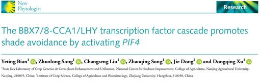 《New Phytologist》发表许冬清教授团队“The BBX7/8-CCA1/LHY transcription factor cascade promotes shade avoidance by activating PIF4”
