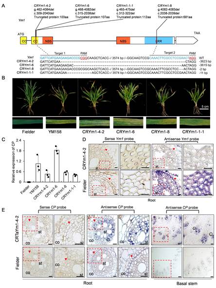 进一步研究发现,Ym1通过识别并与WYMV外壳蛋白(CP)互作触发免疫反应:其LRR结构域与CP互作,CC结构域引发细胞坏死。亚细胞定位表明,Ym1在细胞核和细胞质中均有分布,Ym1-CP互作后,Ym1发生核-质重定位(从细胞核转移至细胞质),将其从抑制状态变为激活状态,引发过敏反应,从而赋予根部特异表达的Ym1抵御病毒向根的中柱鞘侵入的能力,阻止病毒进入地上茎叶部位。值得注意的是,Ym1仅抑制病毒侵染,不影响Pg在根部的定殖。