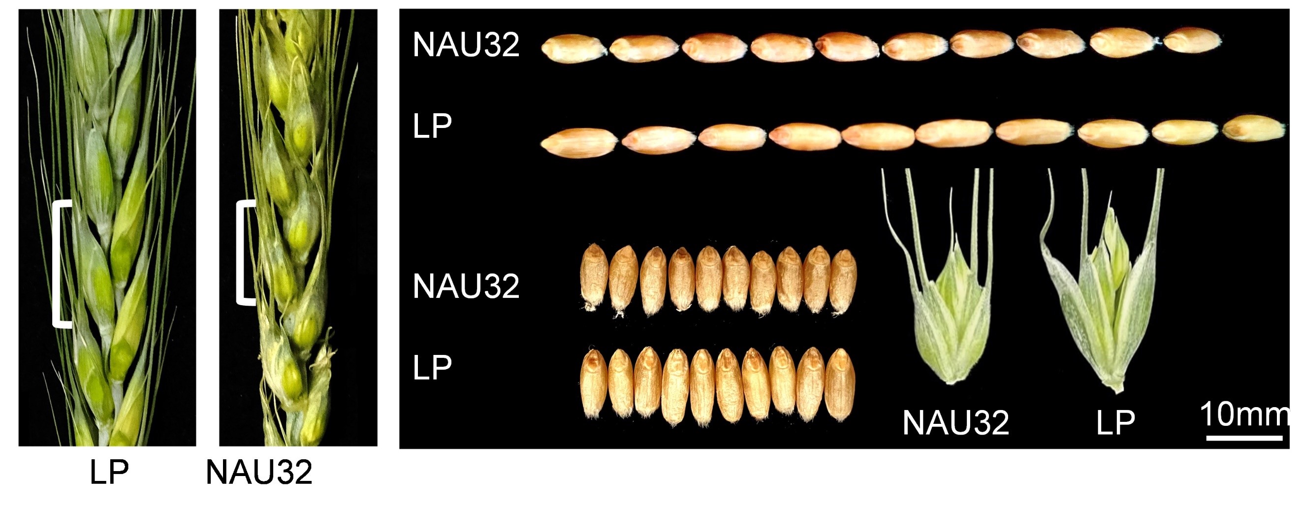 图2 新疆小麦的TaVRT-A2提前终止突变体NAU32护颖变短