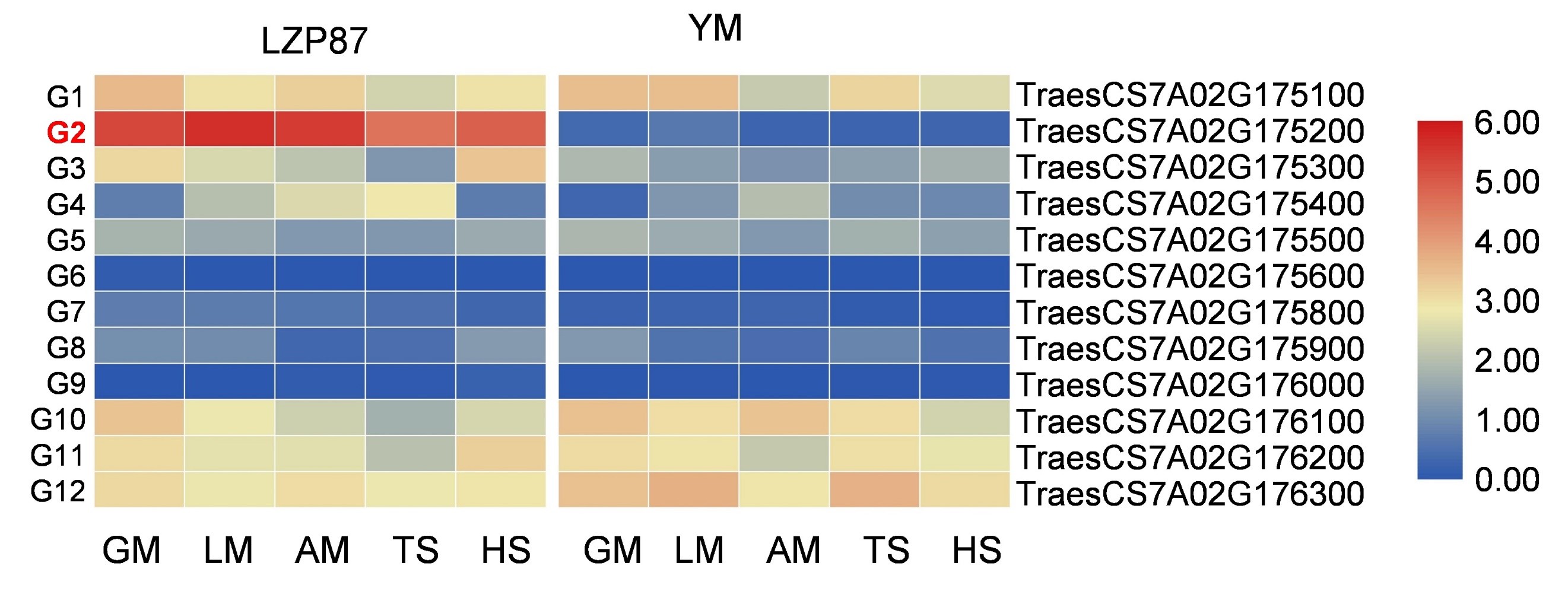 图1 表达分析预测定位区间内的G2(TaVRT-A2)是P1的候选基因