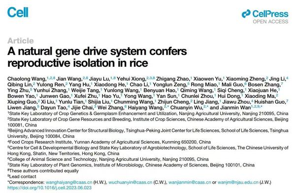 Cell | 万建民团队阐明籼稻粳稻杂种不育分子机理破解水稻生殖隔离之谜
