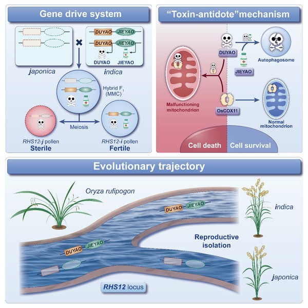该研究还发现,现代水稻育种无意中将这对基因从籼稻引入粳稻后,其在粳稻种群中快速扩散,进一步说明了这对基因的“基因驱动”特性。利用这一特性,可以将优良基因(如优质、高抗、耐逆)与这对基因串联,“驱动”这些优良基因在后代群体中快速传播和纯合,从而大大缩短育种时间,提高育种效率。