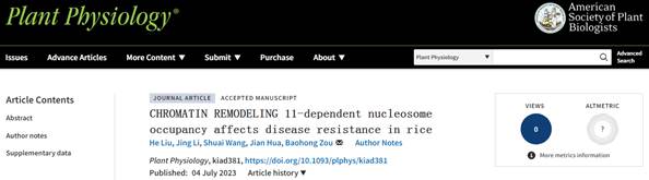 《Plant Physiology》发表华健教授课题组“CHROMATIN REMODELING 11-dependent nucleosome occupancy affects disease resistance in rice”