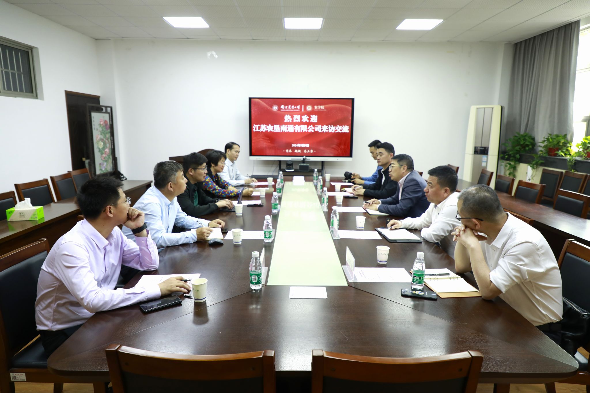 5月9日,江苏农垦集团南通有限公司党委书记孙健一行来我院就拓展校企合作的具体事宜进行洽谈交流。我院党委书记庄森、党委副书记殷美、副院长王益华、智慧农业系教授刘小军和农学系蔡剑教授参加交流会。