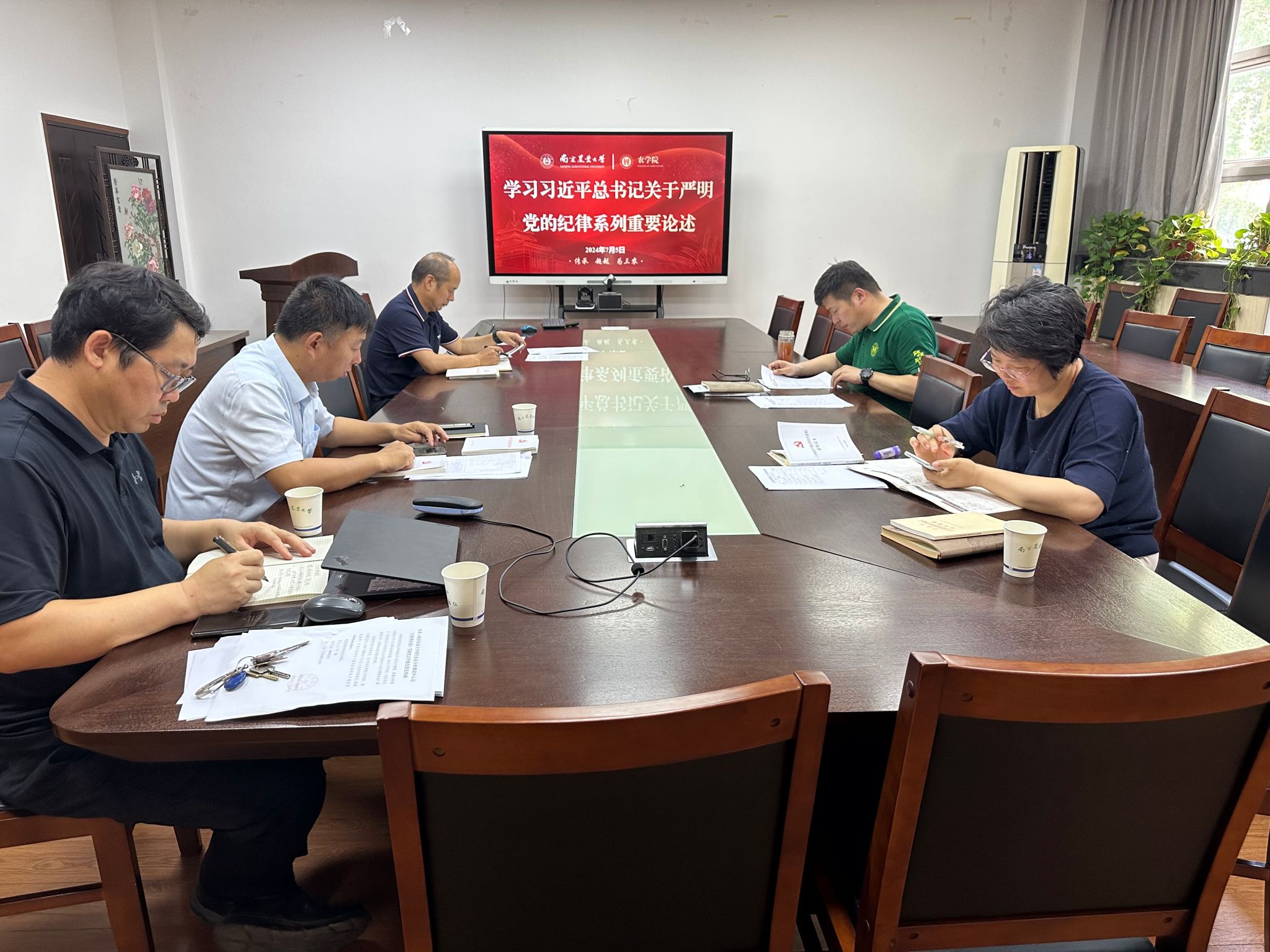 上午,班子成员分别围绕《中国共产党纪律处分条例》中党的政治纪律、组织纪律、廉洁纪律、群众纪律、工作纪律、生活纪律等内容带头领学条例原文。随后,班子个人紧扣“六项纪律”,立足本职岗位,逐一谈学习体会。大家相继表示,通过此次学习,进一步明晰了“红线”和“底线”,将保持高度的政治警觉性,不断提升依法依规开展人才培养、教学科研的意识和能力,切实做到学纪、知纪、明纪、守纪。