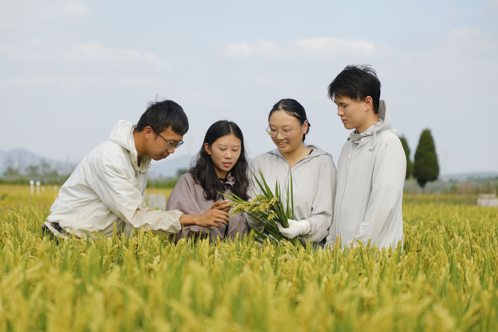 “这块田是粳稻、这块是籼稻,粳稻种植的品种是宁香粳9号,大家穿好水鞋,下田取样观察水稻灌浆情况……”番号鸽 白马教学实验基地处水稻栽培专业的博士研究生张华正带领着师弟师妹们检测水稻灌浆情况,通过取样来观察水稻籽粒饱满程度,精准追踪“灌浆速率、积累量、持续时间”等核心动态,为籽粒长饱满、高品质“规划路径”。