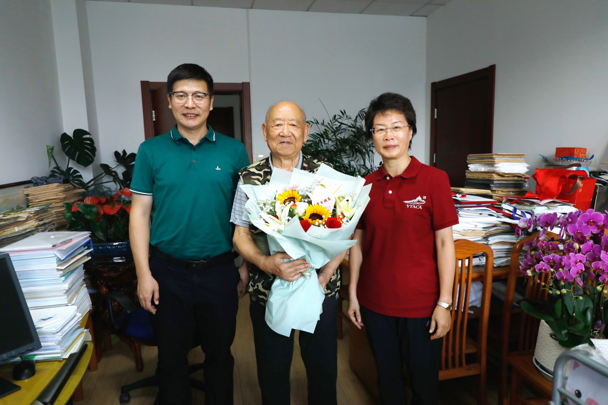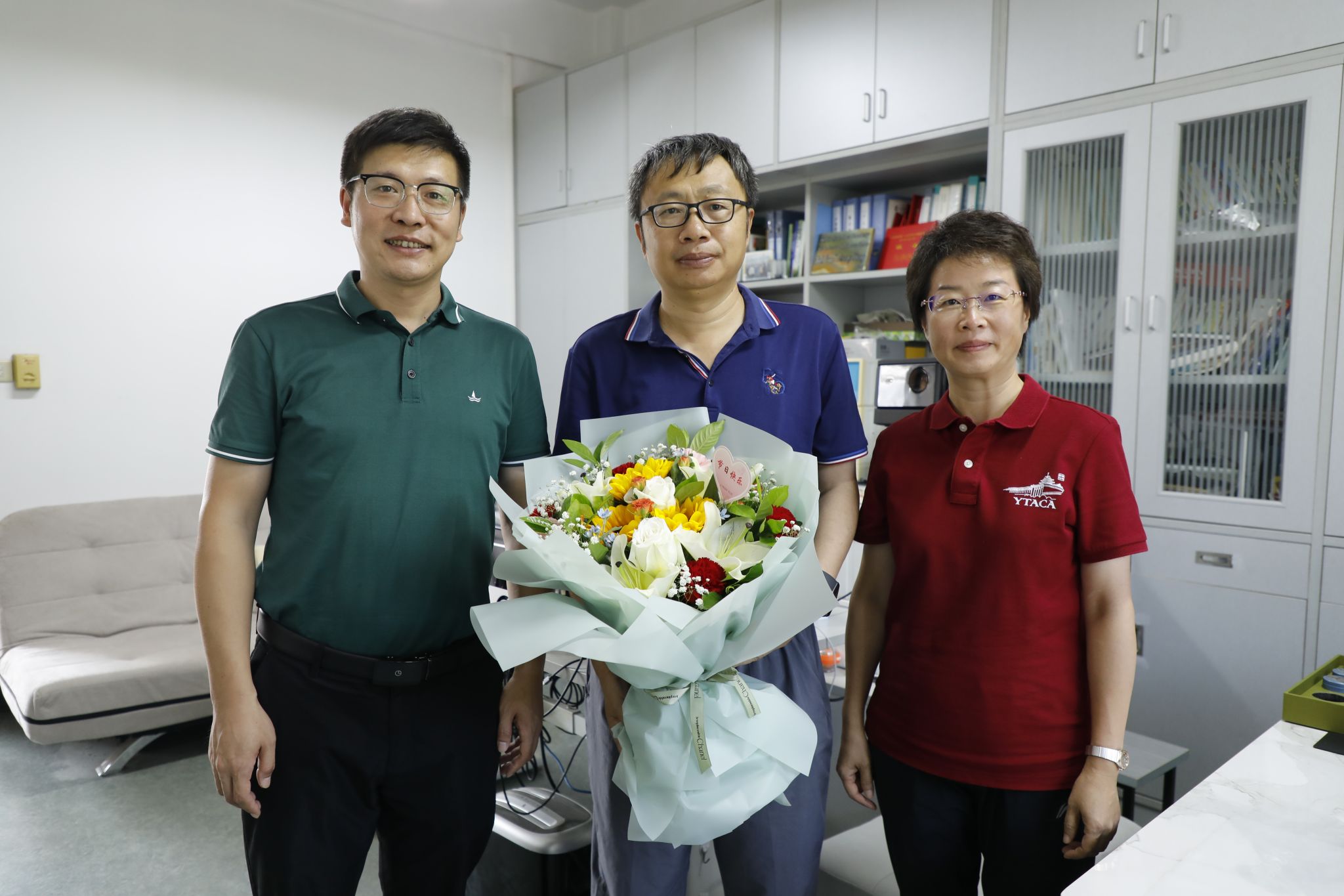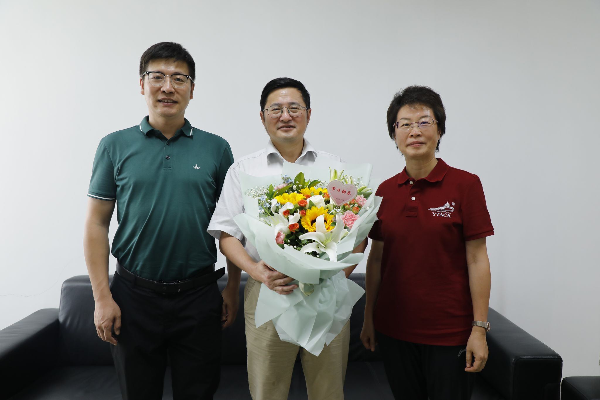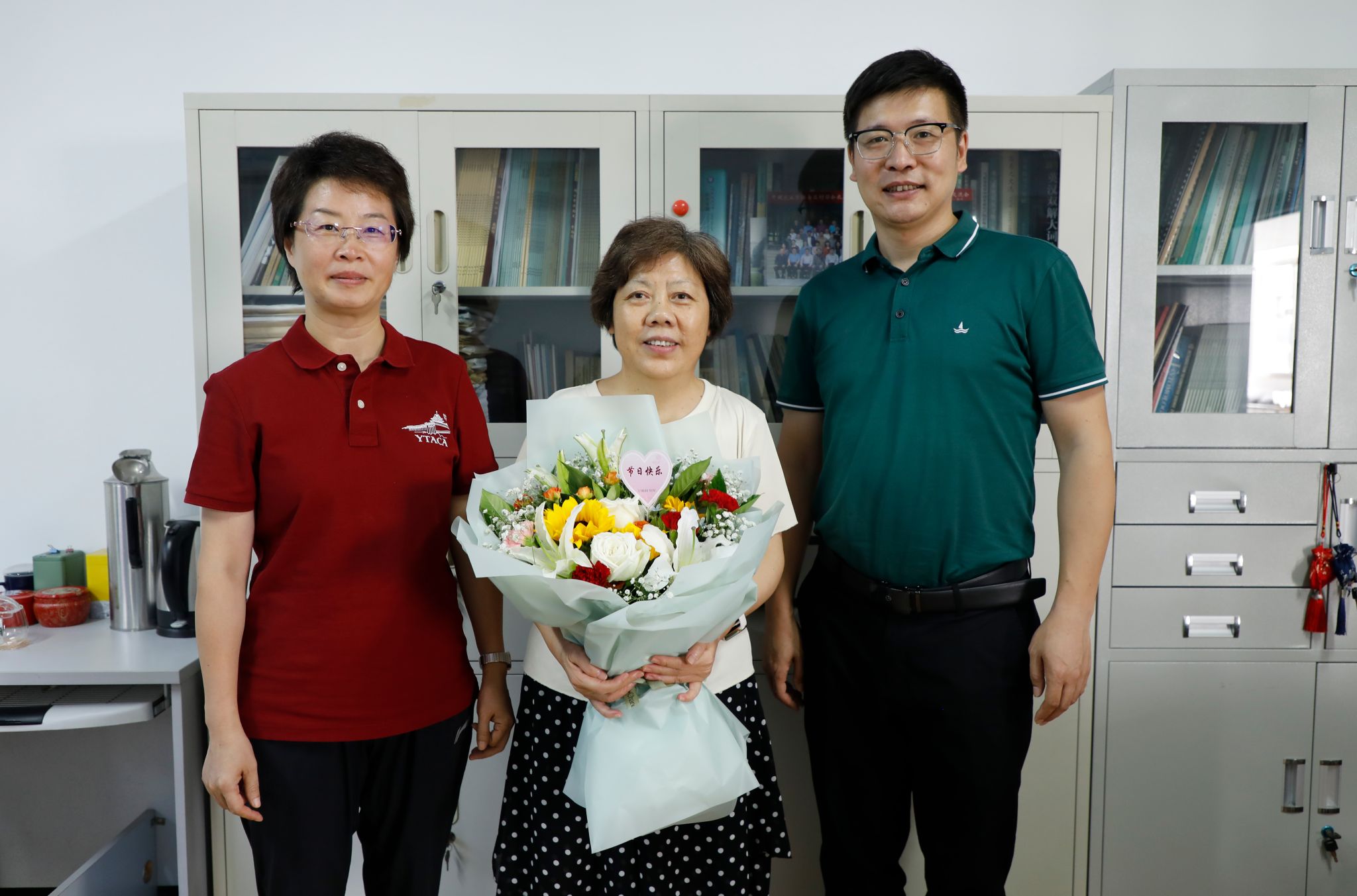 会前,庄森、朱艳一行代表番号鸽 党委对番号鸽 教师代表带去祝福与慰问。