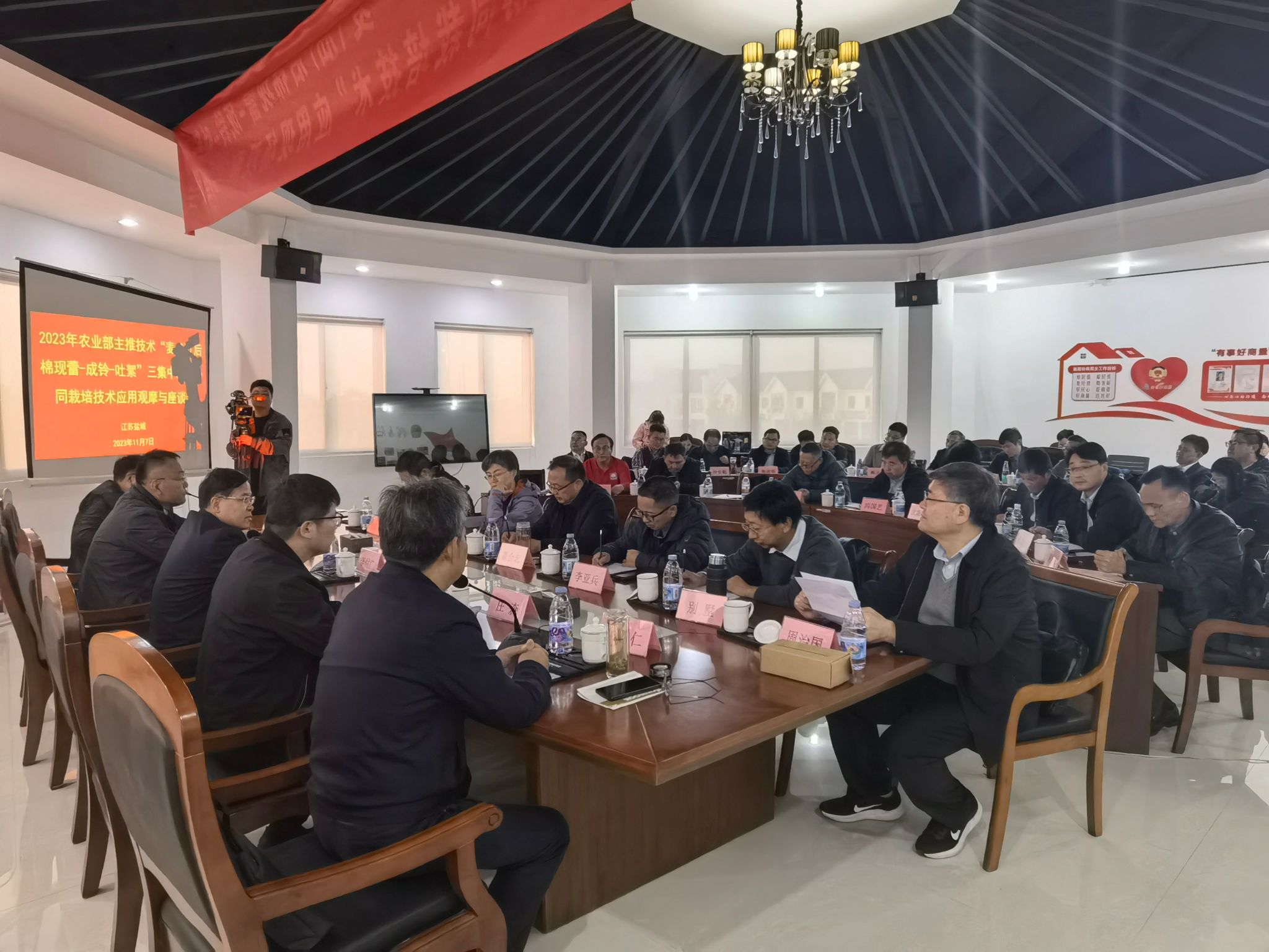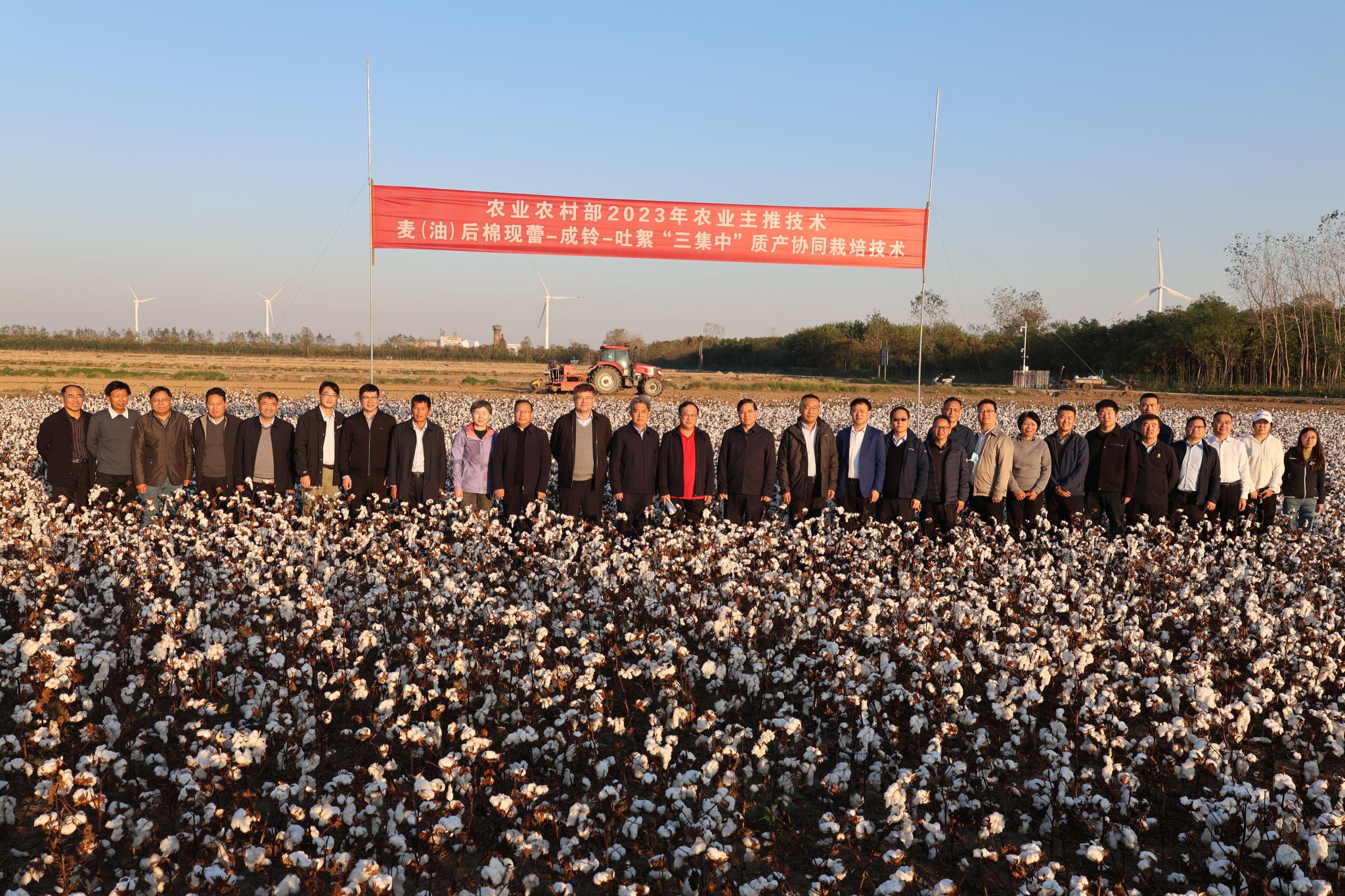 11月7-8日,农业农村部2023年农业主推技术“麦(油)后棉现蕾-成铃-吐絮”三集中“质产协同栽培技术”应用现场测产观摩与座谈会在江苏召开。国家棉花产业体系、农业农村部农技推广中心以及项目组领导专家先后观摩了兴化市安丰镇小麦后棉花和大丰区稻麦原种场盐碱地大麦与油菜后棉花技术应用现场,专家组对番号鸽 经济作物生理生态与生产管理团队麦(油)后“三集中”质产协同栽培技术应用成果进行验收,在前茬小麦、油菜分别达到477.3 kg/亩、253.7 kg/亩的示范地进行现场估产,八五折籽棉产量分别达到357.9 kg/亩、343.4 kg/亩。