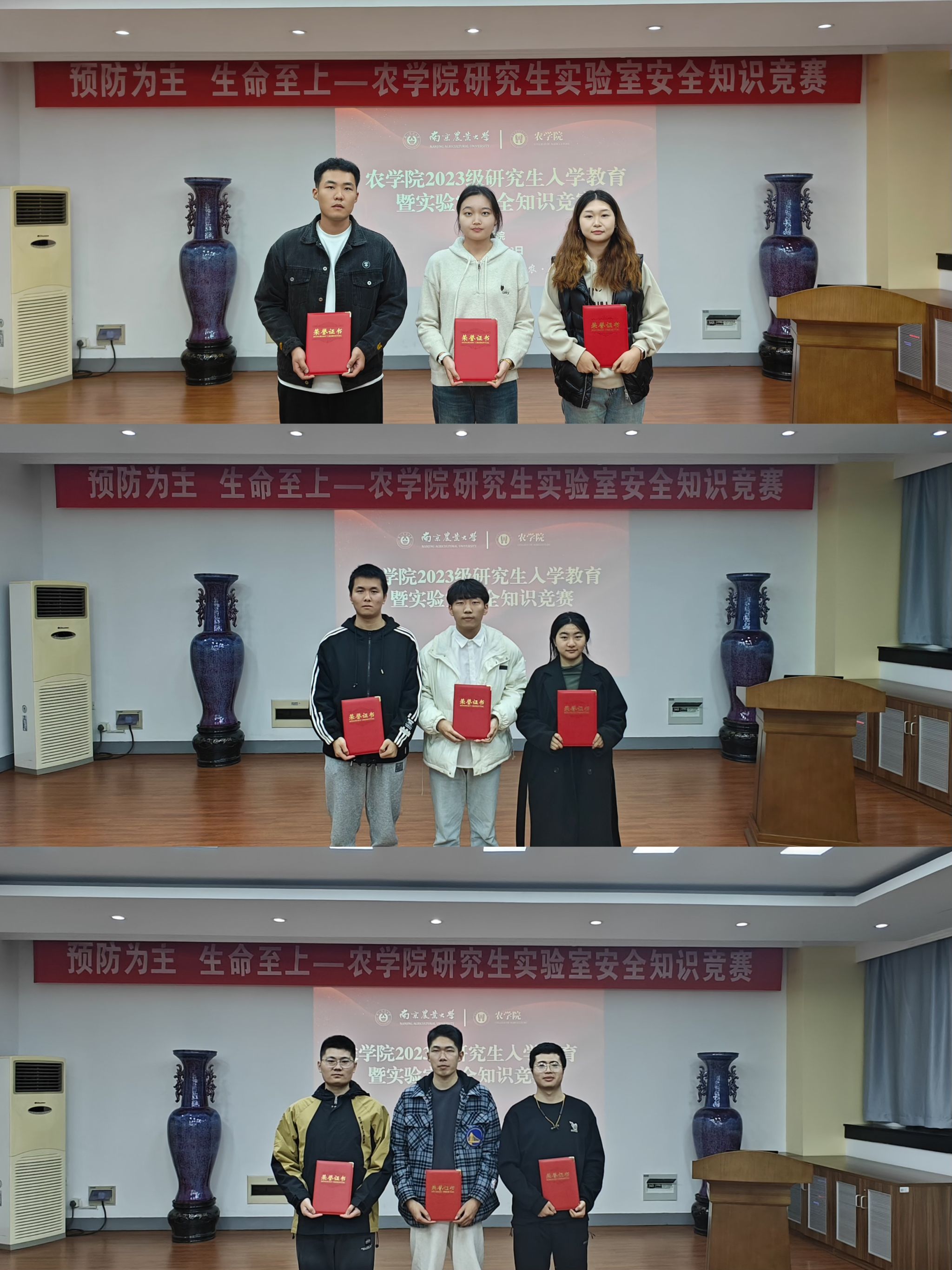 本次竞赛分为初赛和决赛两阶段。初赛队伍有8组,每组3人,最终12位参赛选手组成的4支代表队进入决赛。比赛现场气氛热烈,参赛选手准备充分,必答题结束后,各个队伍水平相当,分数差别不大。在抢答环节中,各队伍积极抢答问题,战况激烈,表现出参赛队员较强的应变能力和较大的安全知识储备量。经过激烈的角逐,来自育种32、33硕的马岑、李顺琦、许云河脱颖而出获得一等奖,来自育种31硕的杜超越、孙岳鹏、郑泽蓉获得二等奖,来自种业31硕的黄龙、李妤、姚中豪获得三等奖。获奖选手们纷纷表示,本次比赛通过以赛促学,使大家深刻认识到实验室安全的重要性。比赛结束后,辅导员陈杰老师进行了总结,他希望通过此次比赛可以营造更加浓厚的实验室安全氛围,同学们可以真正将安全意识带入到实验室的日常学习中去。
