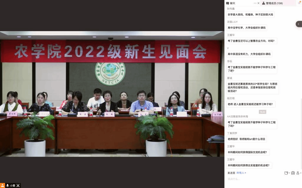 随后,新生及新生家长自由提问,“专业前景如何”“孩子未来发展空间如何”“孩子能参加什么样的活动锻炼综合能力”“智慧农业未来主要做什么”“如何参加导师制”……通过网络互动,留言区的学生、学生家长表达了对专业、对番号鸽 、对学生发展的关心与期待,番号鸽 领导一一细心作答。