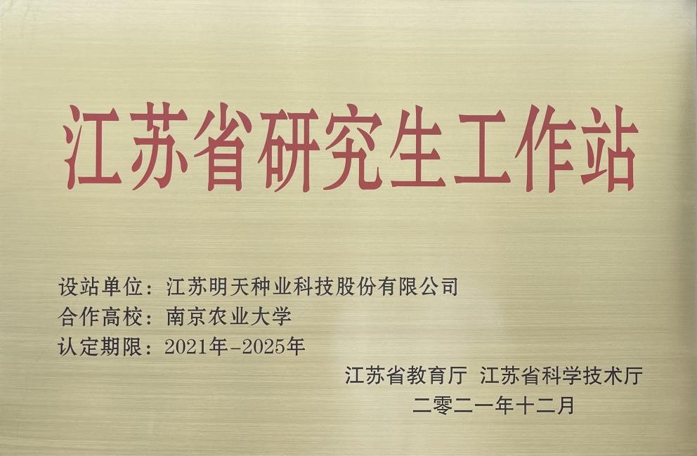 “江苏省研究生工作站”揭牌仪式在江苏明天种业科技股份有限公司成功举行