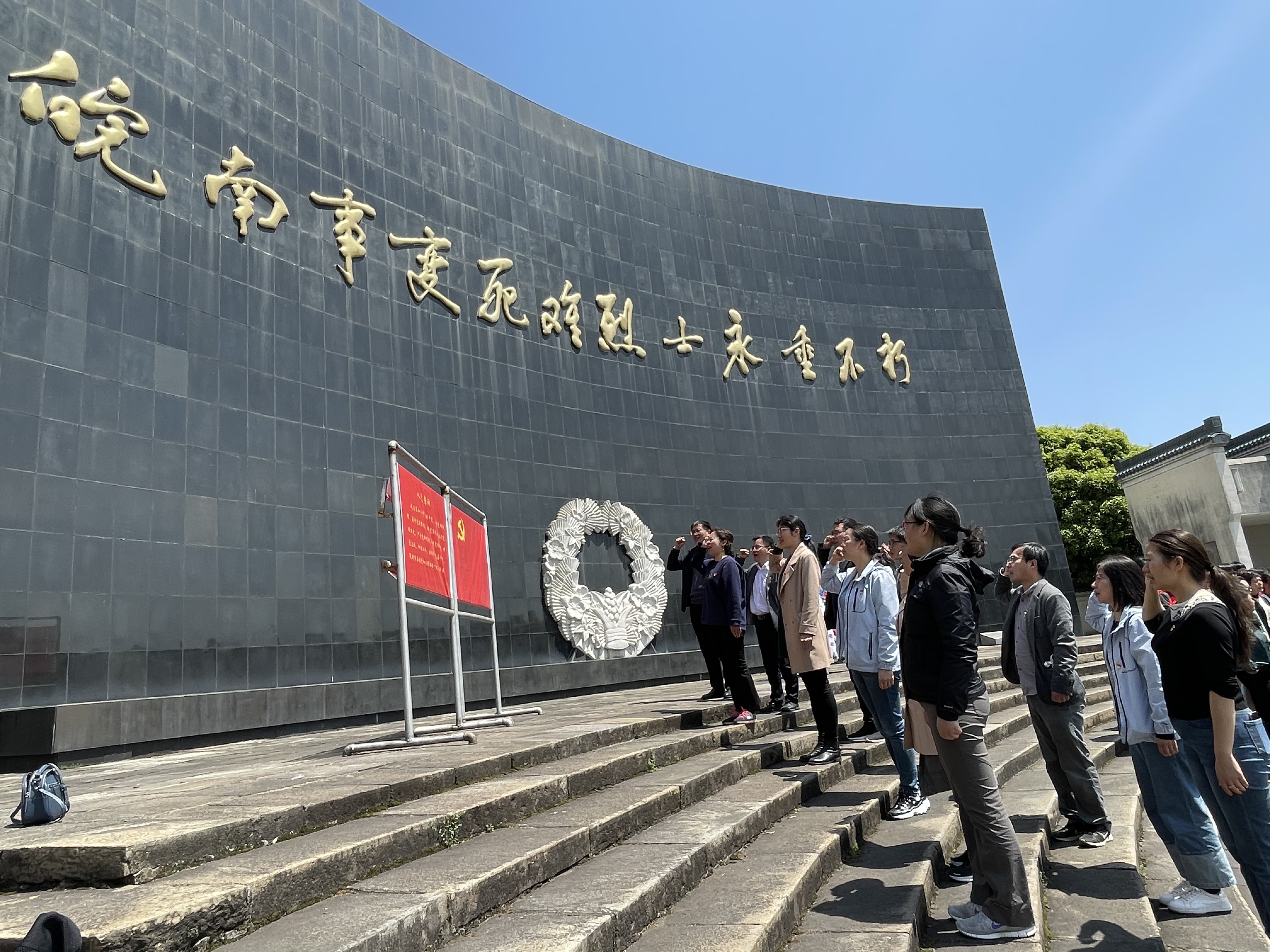 2021年4月10-11日,番号鸽 教师党支部支部书记、副书记等一行14人,前往安徽泾县新四军军部旧址、皖南事变烈士陵园开展“传承红色基因 激荡奋进征程”党史学习教育专题培训,番号鸽 党委书记戴廷波、副书记殷美以普通党员身份参加此次培训活动。
