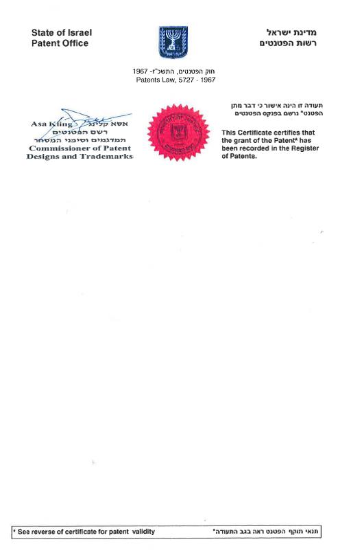 以色列发明专利授权证书