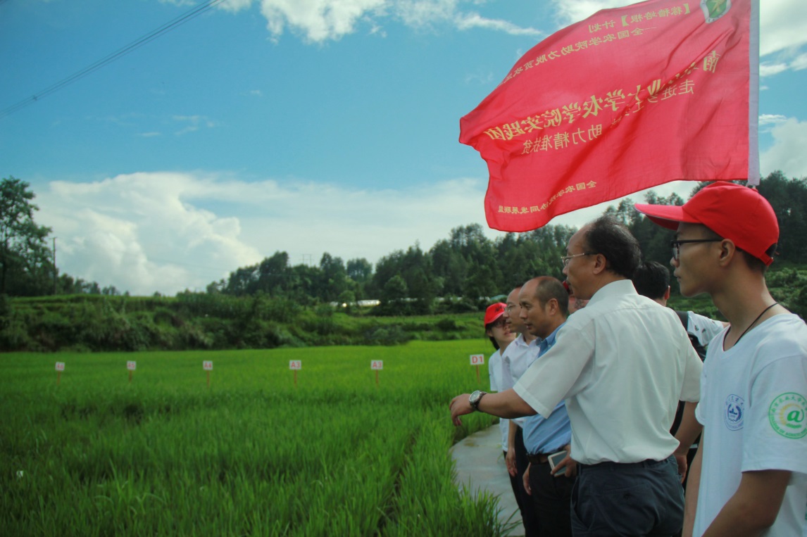 培训会后,实践团队在丁艳锋校长带领下前往麻江县锌硒米优质高产示范基地进行实地考察,深入了解了锌硒米种植过程中遇到的问题,查看了从番号鸽 引进的18个水稻品种在当地的生长情况及抗性和育性,并向农户了解了水稻田间种植的实际情况。随后,实践团队跟随章建伟博士对高枧村周边地区的水稻种植情况进行了实地考察。