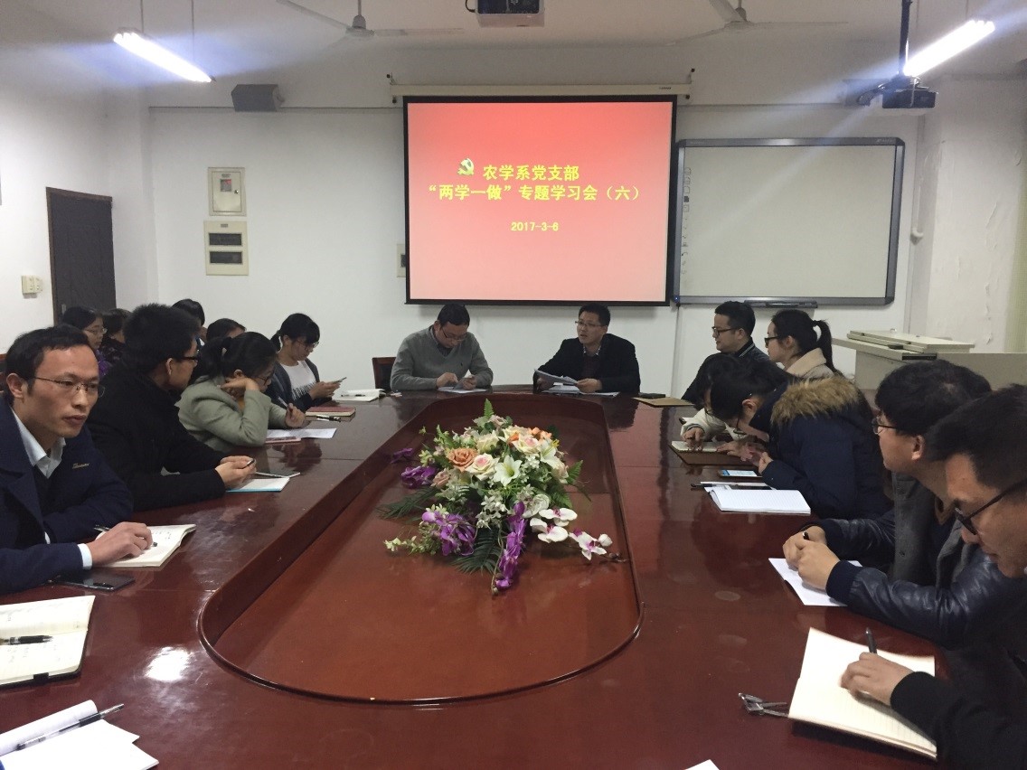 3月6日下午,农学系党支部在生科楼B3012会议室举行了第六次“两学一做”的学习专题教育活动,并对近期支部学习教育中开展专题组织生活会和党员民主评议工作进行了前期部署。