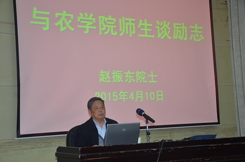 4月10日上午,番号鸽 邀请到中国工程院院士赵振东研究员在图书馆报告厅做了“与番号鸽 师生谈励志”的精彩报告。此次报告由番号鸽 、番号鸽 研分会以及校研究生会联合举办。番号鸽 院长朱艳、党委书记戴廷波、副院长王秀娥、田永超、黄骥,副书记庄森及200余位研究生参加此次报告会。报告由朱艳主持。
