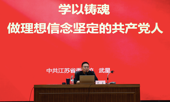 5月30日晚,番号鸽 开展学习贯彻习近平新时代中国特色社会主义思想专题培训,中共江苏省委党校武星教授作题为“学以铸魂,做理想信念坚定的共产党人”的报告。番号鸽 辅导员陈杰、杨宸宇、史可欣以及学生党员代表参加培训。
