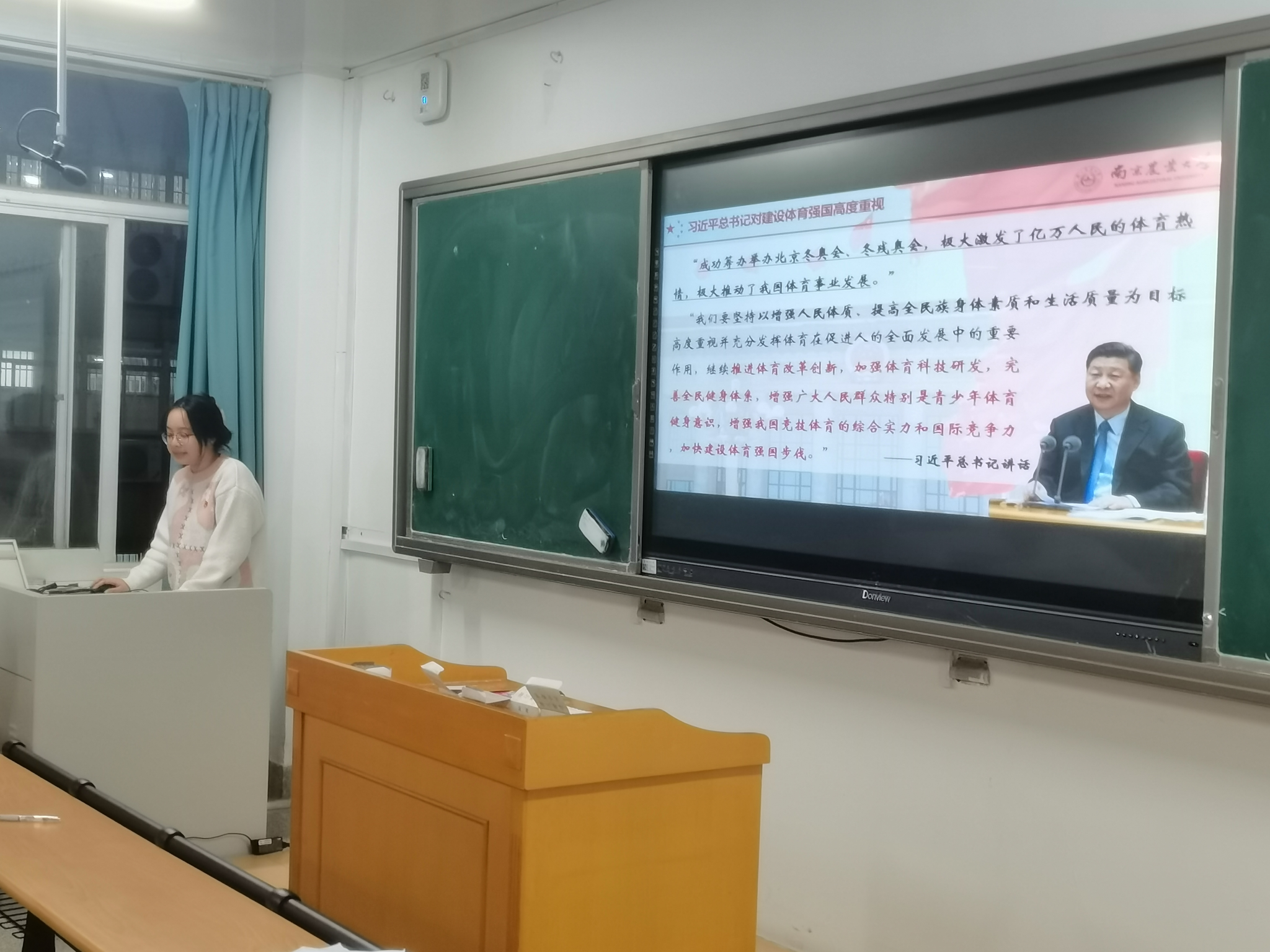为响应习近平总书记“加快建设体育强国步伐”的号召,荆子涵同学带领大家开展了以“强体魄 铸国魂——加快建设体育强国步伐”为主题的理论学习,从体育的概念出发,简要介绍了我国体育现状和近年来我国举办的大型体育赛事,深入探讨建设体育强国的途径与方法。在讨论环节,大家就我国竞技体育的现状以及大学生如何助力体育强国等问题展开热烈讨论。