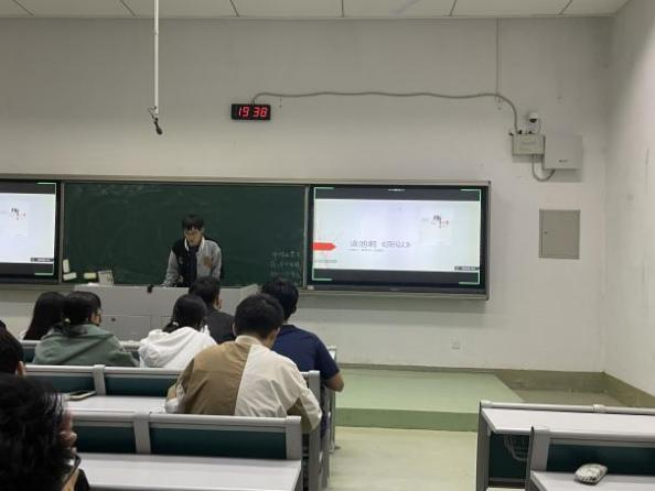 之后卢彦静同学和王剑柘同学进行了主题分享。卢彦静同学分享了如今我们大学生关心的热点问题——内卷,讲述了内卷这个词的由来,并结合一段新国辩的视频分享了内卷的存在是因为“人生无限而资源有限”造成的。王剑柘同学为大家简单介绍了《所以》这本小说,讲了主人翁叶紫一生的悲欢离合,并表达了这本书反映了我们普通人的真实生活状态的观点。