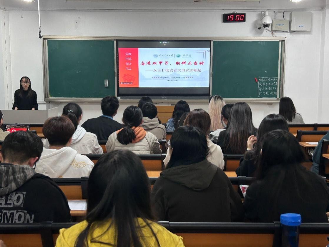11月26日,农学专业二党支部在教学楼召开主题为“奋进双甲子,躬耕正当时——从百廿校史看大国农业崛起”的分班讨论。本次分班讨论由党支部书记李昕宇主持,陈艺锶、李金宇、吴美松主讲。农业专业二党支部党员、预备党员以及积极分子参加此次分班讨论。