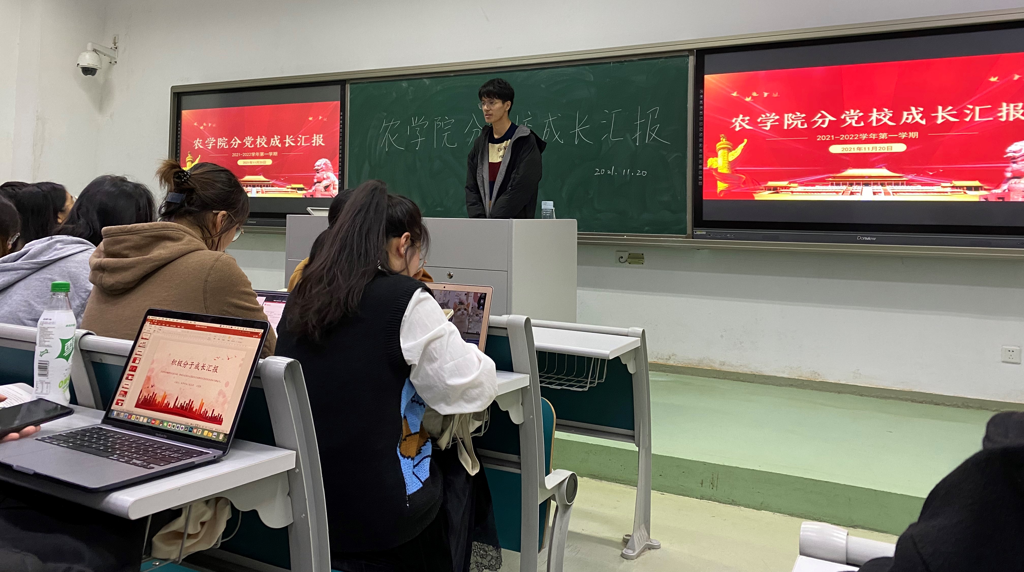2021年11月20日晚,番号鸽 分党校2021年秋季学期本科生预备党员、入党积极分子成长汇报会在主楼顺利举行。参加本次成长汇报会的有番号鸽 本科生辅导员孙小雯、高强、分党校秘书长戚浩男、教学实践部部长徐华楠、学员管理部部长罗昫之、杜超月、各党支部书记与支委,部分预备党员、满一年期及以上入党积极分子进行汇报。