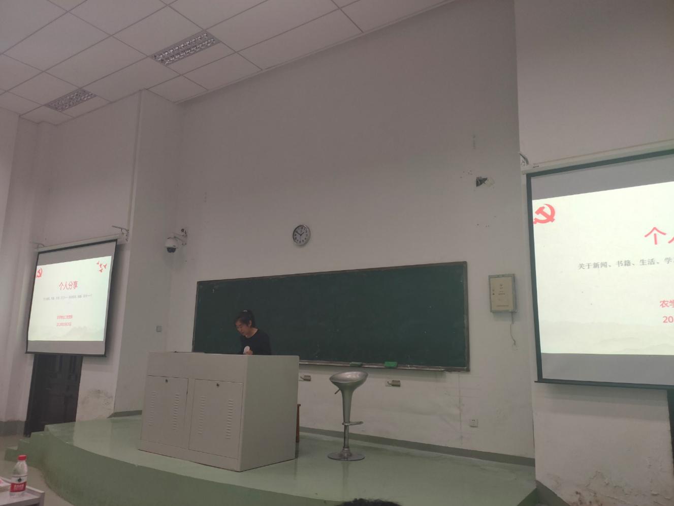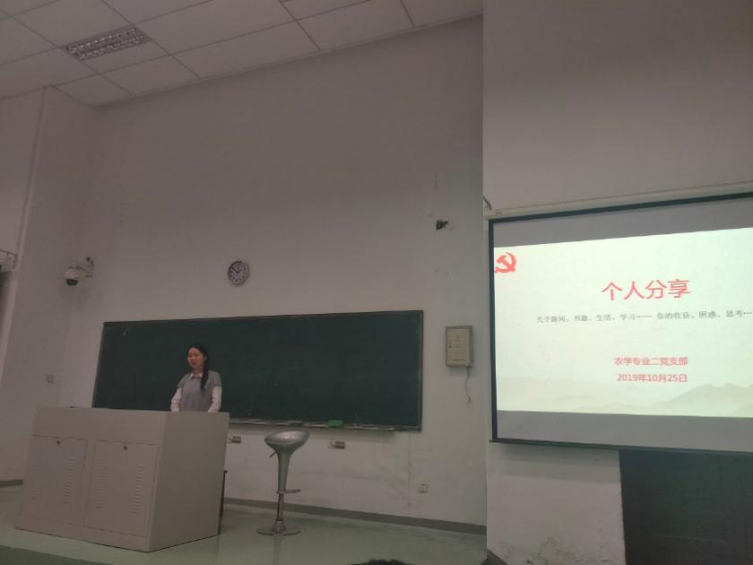 最后,是个人分享环节,同学们一次上台就时事、书记、生活,学习等方面分享了个人收获、困惑和思考。台下的同学也积极向其提问,不同思想的碰撞让大家有了更好的交流。农学专业二党支部第二次分班讨论圆满结束。