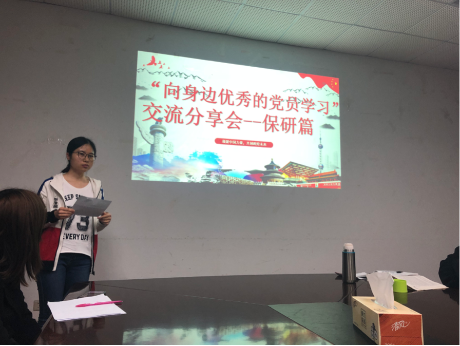 分班讨论结束后,支部随即开展了“向身边优秀的党员学习——保研篇”交流分享会,本次分享会邀请了保送浙江大学的孙婷同志和保送本校水稻遗传育种实验室的陈雅萍同志就保研方面的经验和注意事项进行了分享。
