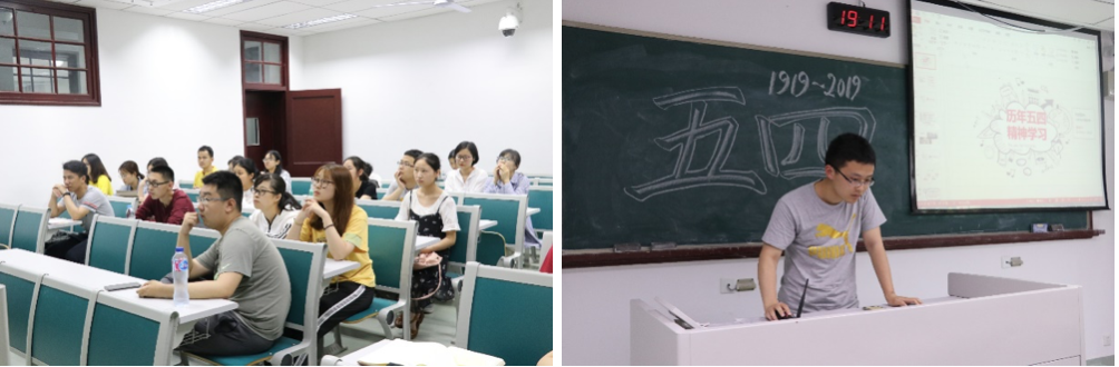 主持人周艺梅简要介绍分班讨论流程后,支部成员龚心如讲述了五四运动的起源,其历史原因包括:新思想与社团、高等教育发展以及国耻情绪。五四运动不仅在当时具有巨大意义,在当代亦是影响深远。