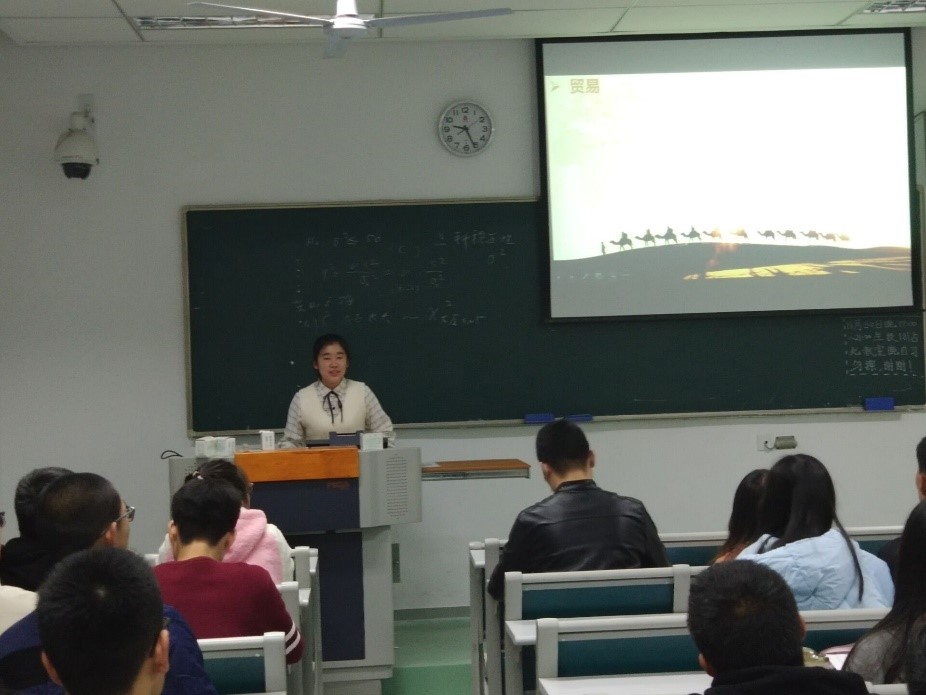应皓小组等就改革开放40年来中国的发展历程和取得巨大成就与大家分享,吕琦特为大家普及了关于“一带一路”相关知识,介绍了“一带一路”的沿革和沿线国家,使支部成员对于“一带一路”有了更具体的认识。应皓从政治、文化、经济、安全、生态等五个方面为大家做了具体介绍,引发了大家激烈的讨论,吴嘉琛同学就“‘一带一路’沿线文化差异较大,是否会成为触发文明冲突的引线”发表了自己的看法,他认为不同文化的国家间的交流对话与合作是增进理解、消除冲突的最佳途径,只要遵循互利共赢的原则,坚持和谐包容,倡导文明宽容,尊重各国发展道路和模式的选择,加强不同文明之间的对话,求同存异、兼容并蓄、和平共处、共生共荣,就不会触发冲突。