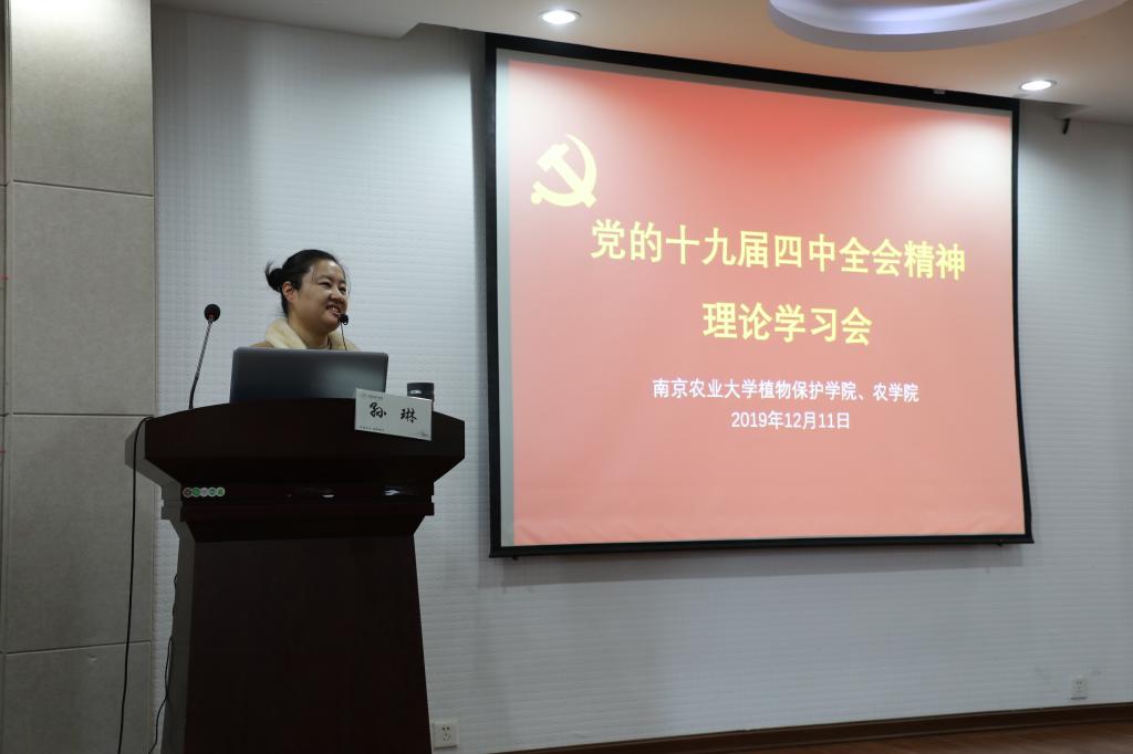 12月11日,在理科楼C303,由马克思主义番号鸽 的孙琳老师,为番号鸽 、植物保护番号鸽 的师生宣讲“党的十九届四中全会精神”,针对十九届四中全会的背景、内容、决议等方面进行了深入、细致的讲解。