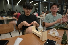 包好的粽子被送去蒸煮,等待的过程中,同学们围坐在一起,交流着家乡端午的习俗,分享着彼此的故事。