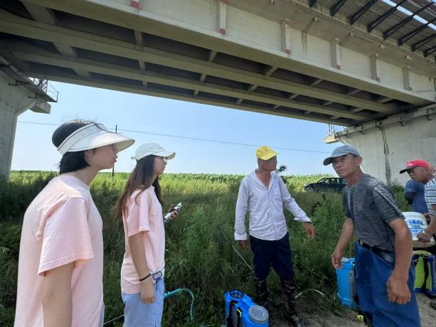 成员们纷纷向宋师傅请教更省力的办法,询问是否可采用无人机喷洒农药。宋勃师傅向实践团成员介绍,无人机目前主要应用于花生和玉米种植领域,作业成本约为每亩六元,单次可承载 100 公斤农药,飞行一次能完成 20 亩地的喷洒作业。他表示,无人机作业成本显著低于人工,但防治效果仍略逊于人工操作。同时,宋师傅寄语在场大学生,希望他们能通过技术研究改良设备,为农户提供更优解决方案。