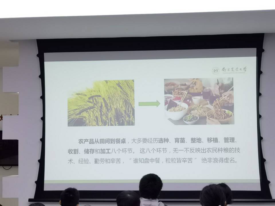 科普讲解从智慧农业、无公害农产品、小麦、水稻等多个主题让同学们了解了农业作物和现代农业技术,通过学习作物从一颗种子变成食物的漫长过程,体会到粮食的来之不易,明确节约粮食的重要性,进而使“光盘行动”有更高的参与积极性。