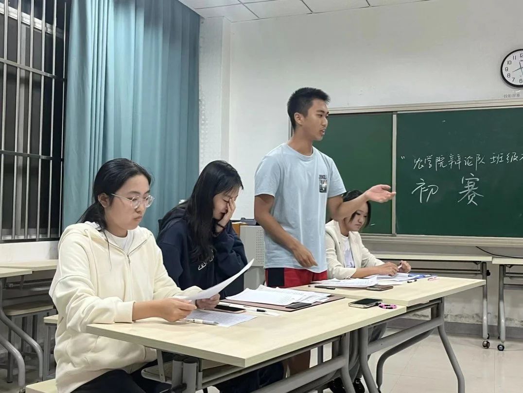 尽管是第一次接触辩论,但大家仍对辩论充满热情,第一轮比赛就激烈万分,双方辩手你来我往,在气势上互不相让,步步紧逼。他们不断推理论证,总结归纳,使得整个辩论过程充满了悬念和思考。经过两场激烈的角逐之后种子队、智农队与首轮轮空的植实队入围决赛。决赛采用循环赛制,每队要派出八人分别作为同一辩题的正反方进行辩论。初赛失利的同学们积极填补各队空缺,迅速投入到新一轮的备战之中。