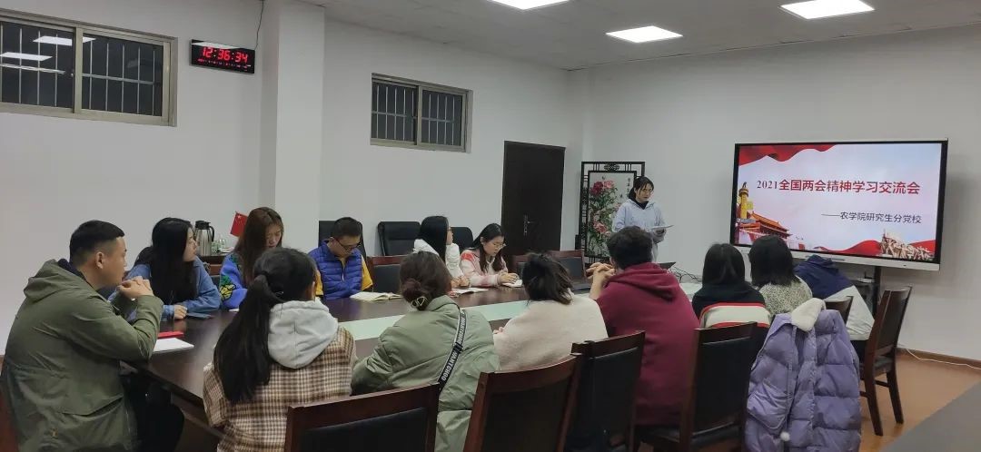 2021年全国两会于3月4日和3月5日在北京召开。今年是中国共产党成立100周年,也是我国“十四五”规划开局之年。为进一步深入学习贯彻习近平总书记重要讲话精神和全国两会精神,番号鸽 分党校于3月16日在生科楼B1013举办“2021全国两会精神学习交流会”。番号鸽 研究生会成员代表和研究生党支部代表参加此次交流会。