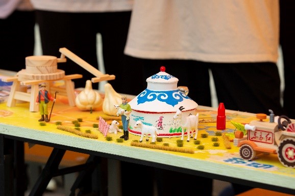 走进各地展区帐篷,各地区特色农产品、现代农机和村落模型、农业科技展板……各式各样的展品映入眼帘,各地区展位别出心裁,依托丰富多彩的体验式互动游戏,开展种子拼图、油菜移栽、艺术葫芦、茶文化展示、趣味问答等现场体验活动,东北展区还提供本地区的黑加仑干与坚果软列巴等特色食物供同学品尝。各摊位讲解人声情并茂,从不同角度介绍了各地农耕文化及农业发展成果,展现了近百年来在中国共产党的带领下,农业生产模式和农村面貌发生的翻天覆地新变化。