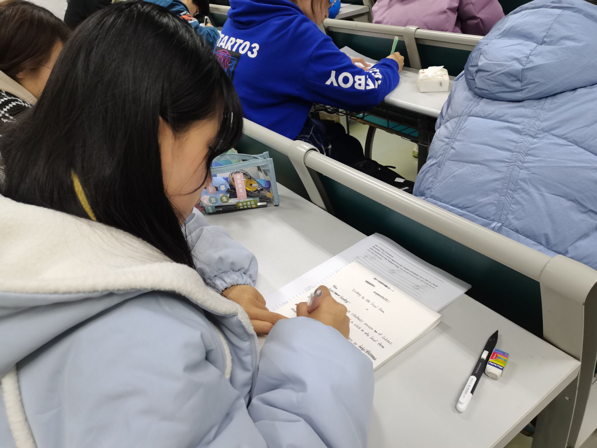 此次考试所用试题符合全国大学生英语四六级考试大纲标准,考试现场及流程全部按照英语四六级考试流程进行。考试期间,同学们严格的遵守考试流程,认真答题,检验近期的学习成果。