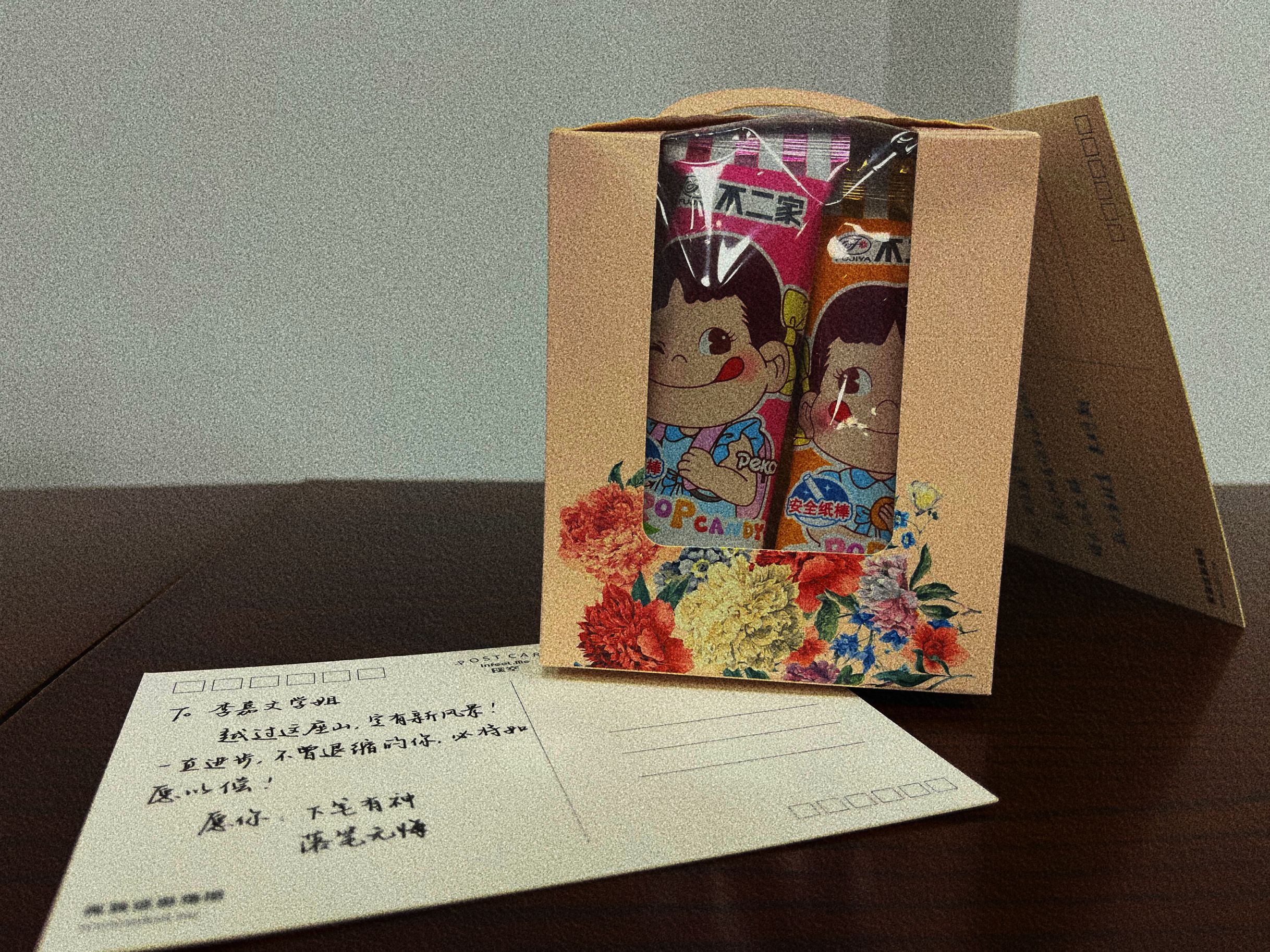 一行行饱含祝福与深情地的滚烫文字在明信片上款款写下,一句句真挚、温馨的祝愿镶刻在字里行间,话语温暖,以笔笺心,以书传情,愿这深含关怀的字句能增添考研学子追梦前行的动力。番号鸽 别具一格,以暖心包传递心意、用文字承载祝福。