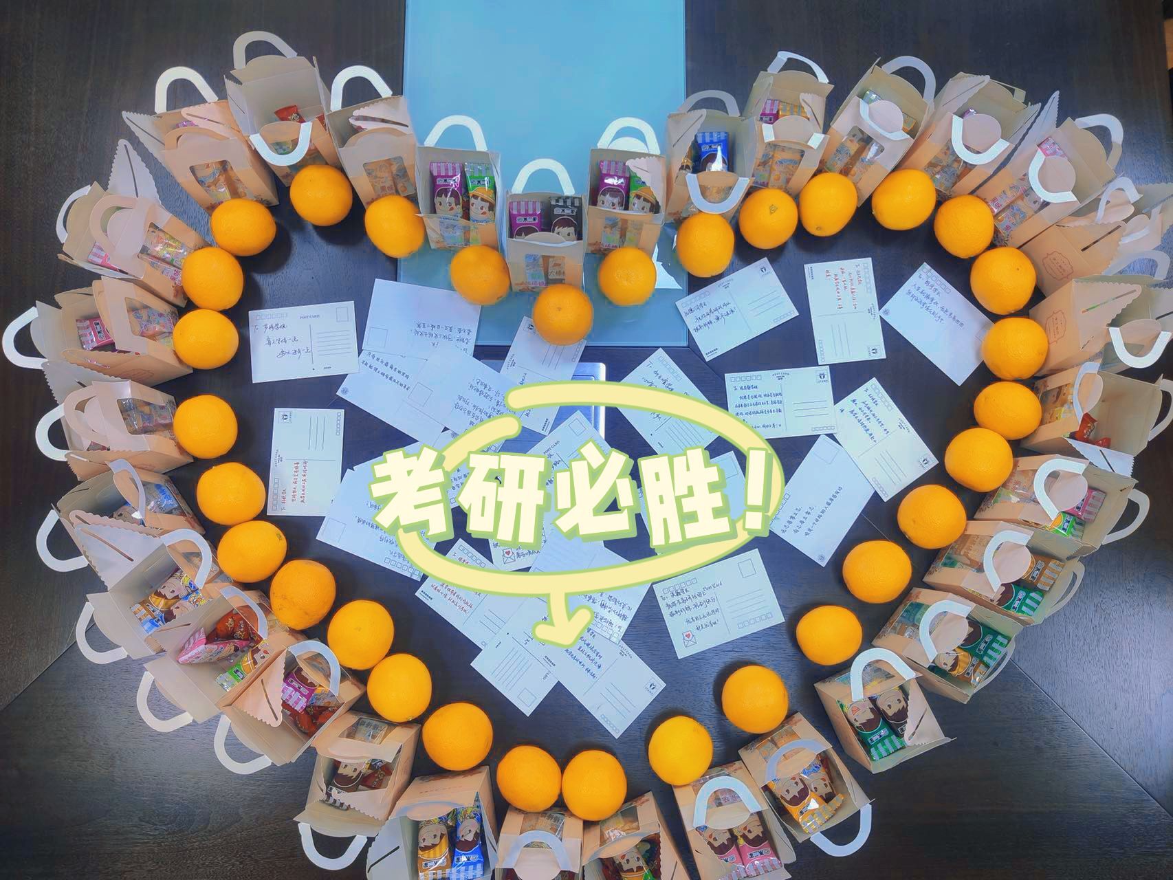 为准备这近百份“考研暖心包”,番号鸽 本科生辅导员孙小雯老师和高强老师携学生们早早便开始准备着。暖心包装有“旺仔”奶糖、棒棒糖和脐橙,祝愿考研学子们“好运兴旺,永远最棒”,“脐开得胜,橙功上岸”,另外还有辅导员老师们及学弟学妹们亲手准备得惊喜——精美贺卡:“长风破浪会有时,直挂云帆济沧海”,“星光不问赶路人,时光不负有心人”,“研途漫漫,番号鸽 与你共进退!”……