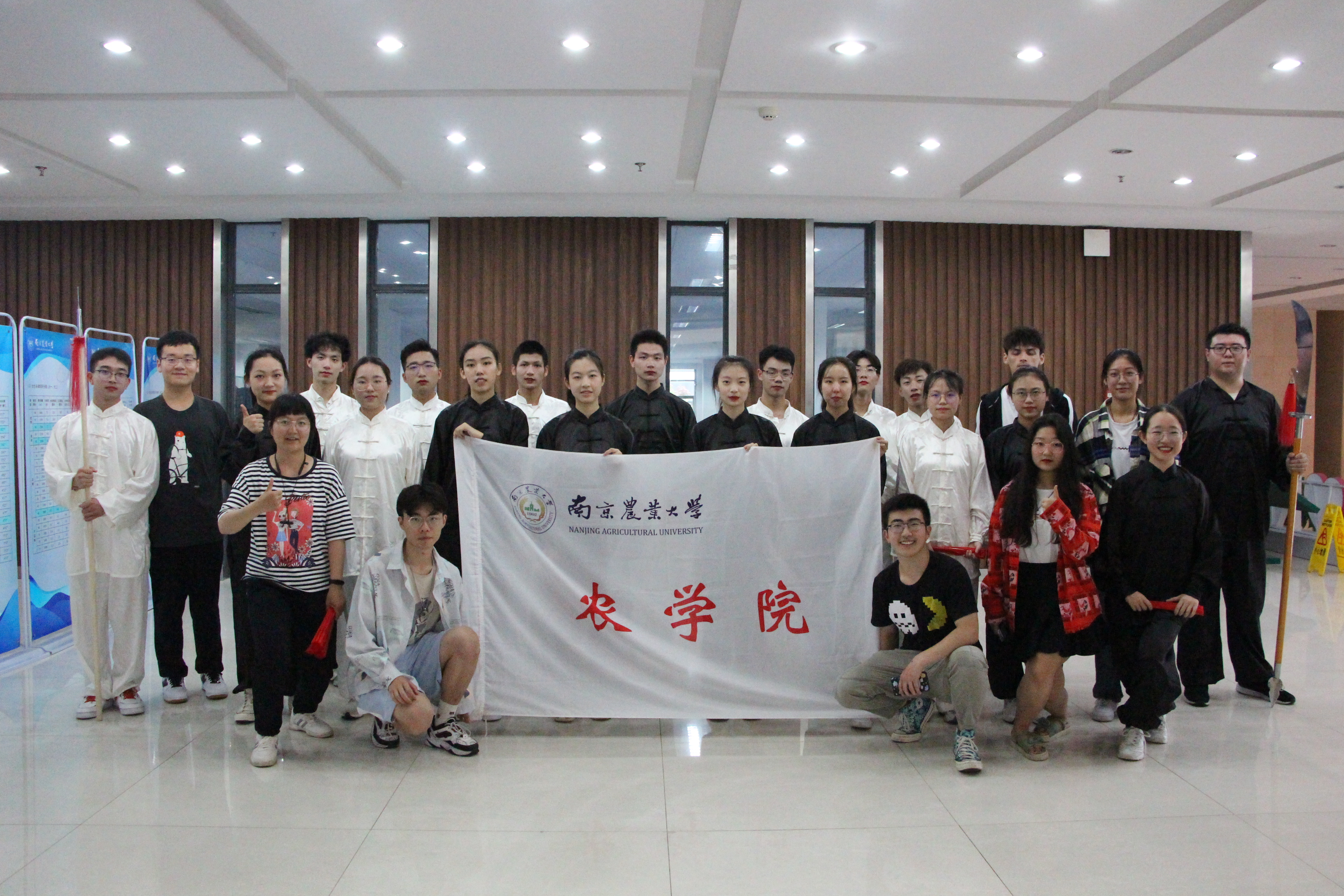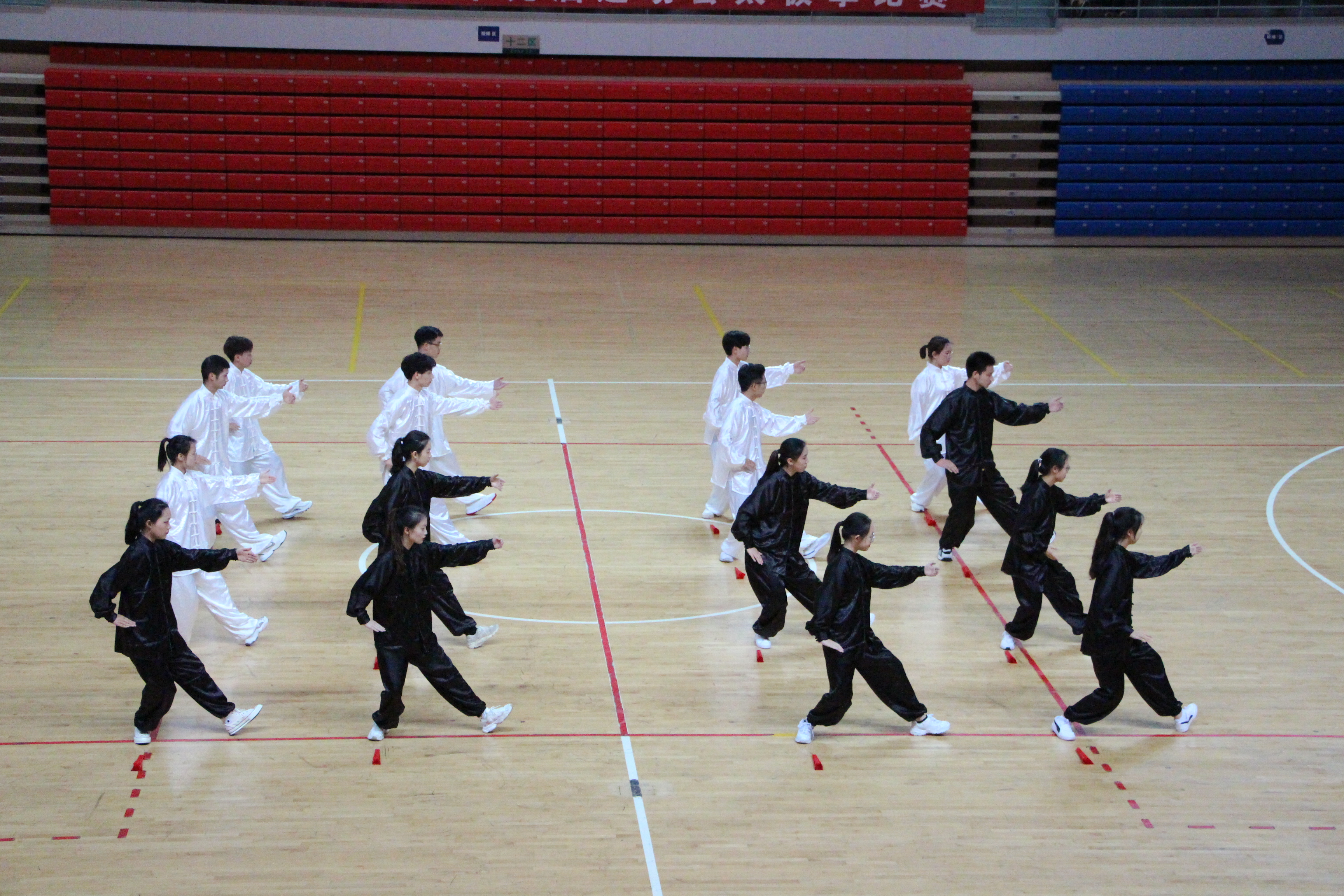 中午12:00,参赛队员们在生科楼E1001做好比赛前的准备工作,换衣化妆,调整好状态。13:30,全部人员前往体育馆进行赛前准备。我们院作为第二个比赛的院系,同学们整装待发,提前在场地候场,主持人宣布入场之后,番号鸽 太极拳代表队动作整齐,口号洪亮地进入主场地。随着音乐的响起,参赛选手迈开左腿,起势,连贯而不失节奏地开始表演,全身柔绵而有力,每一个关节灵巧的配合,身心倾听着悠扬的乐曲,双手如同白云一般舞动着,在柔和的动作中也藏着几分刚劲,双手握拳,转腿,向前缓缓推掌,太极拳部分队员们动作流畅、整齐。随着音乐的转变,表演转入武术部分。同学们精神抖擞,动作苍劲有力,疾若闪电,又稳健又潇洒!引起场内的一阵欢。最后是太极扇部分,同学们开扇合扇整齐划一,给全场带来了一场视觉盛宴。整体比赛从入场到离场,队员们态度认真,表情管理到位,展现了我们番号鸽 的风采!