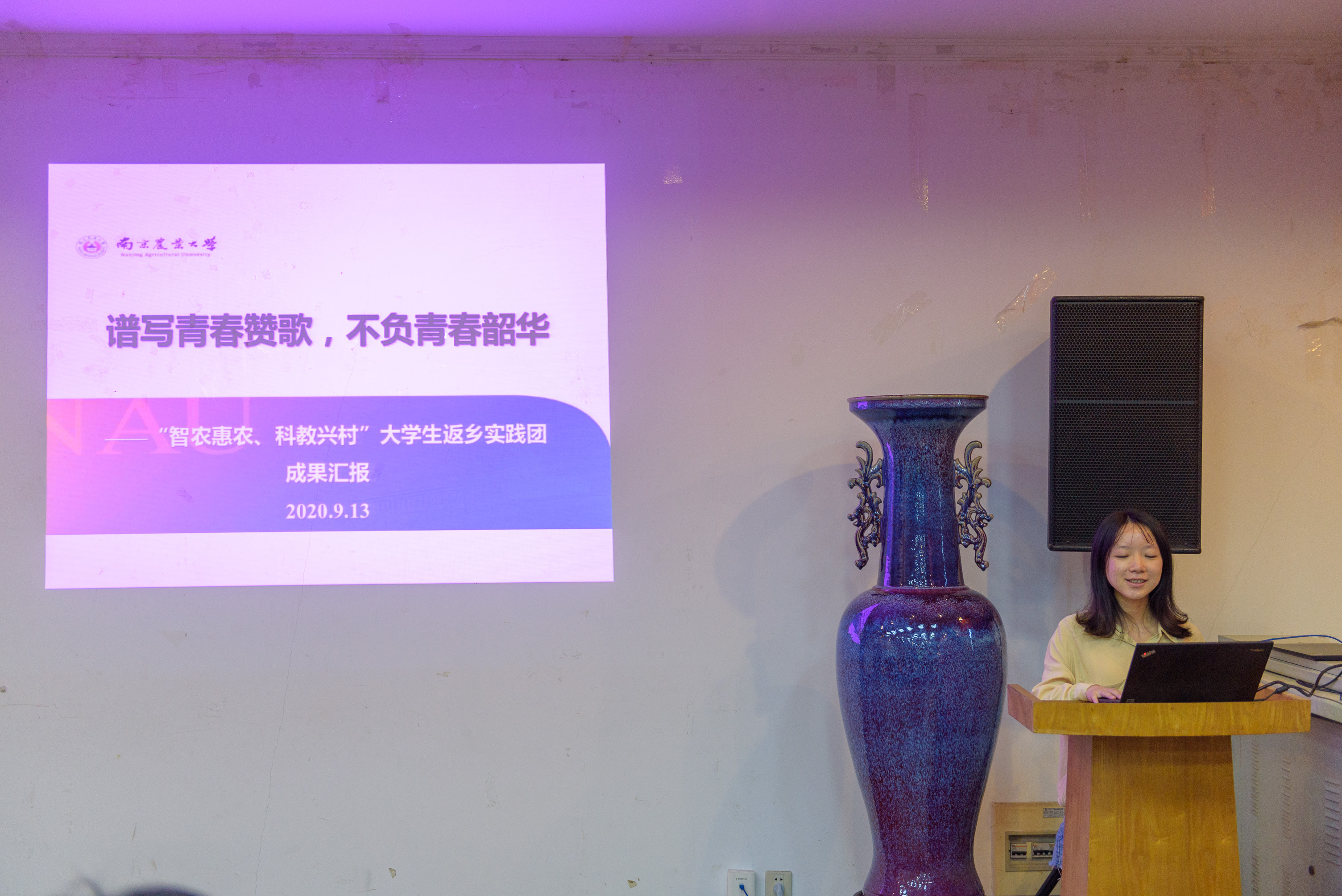 在总结汇报和实践成果展示的过程中,踊跃出一批表现优异的团队及个人项目。“智农惠农,科教兴村”返乡实践团在山东潍坊、济南,四川宜宾、攀枝花,浙江嘉兴,重庆,西藏林芝,新疆喀什等地进行了下乡实践,开展了“七彩宣传单”政策宣讲、“我为家乡农产品代言”直播、农情调查、调研农产品电商销售以及留守儿童暑期夏令营五项实践活动;“强农兴农,青春力量”暑期社会实践团响应国家发改委《消费扶贫助力决战决胜千里脱贫攻坚2020年行动方案》,进行线上扶贫推广工作,讲述国家扶贫故事、普及国家扶贫政策、推广销售扶贫商品;“青春心向故里,互联助力乡村”秾情之声宣讲团利用线上线下结合的方式,走访调研家乡村庄的乡村振兴落实情况及农业生产问题,帮助解决村庄的农业生产问题,制作乡村故事电台,传递乡村正能量……而在个人项目中,徐姊玥参与了烤烟烟叶收购,提高了农学专业素养;朱子怡体验了基层工作,致力于乡村振兴……