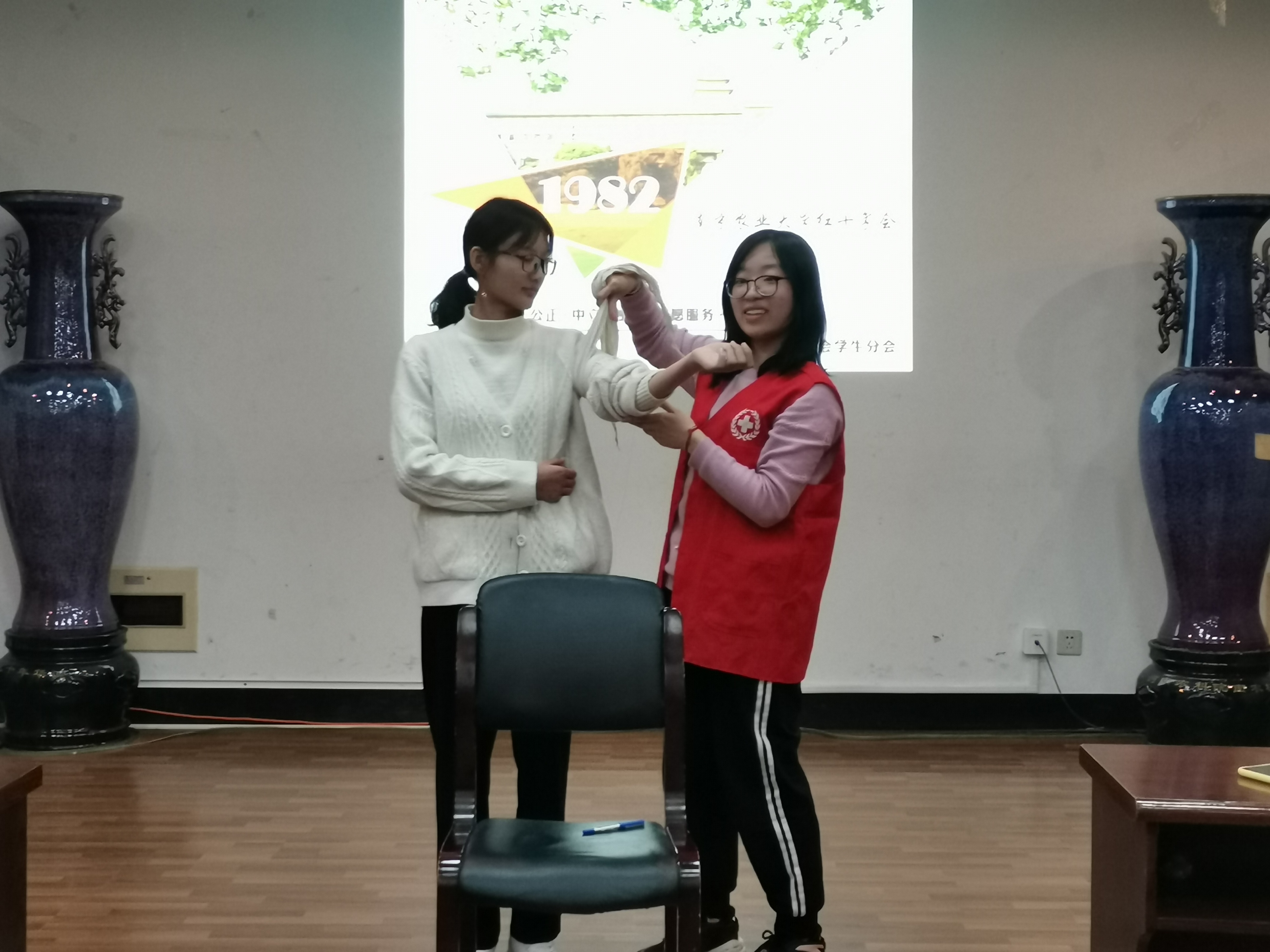 为了普及急救知识,提高大学生在日常生活中的救助能力,番号鸽 红十字分会于11月11日晚19:00举办了急救知识与技能培训。80余名大一和大二同学参与了本次培训。本次培训由番号鸽 红十字分会成员应邀讲解。