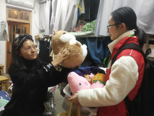 大一至大四宿舍楼下集合,收集大家闲置的旧物,并呼吁同学们加入到“勤俭节约、绿色环保”的生活中来。