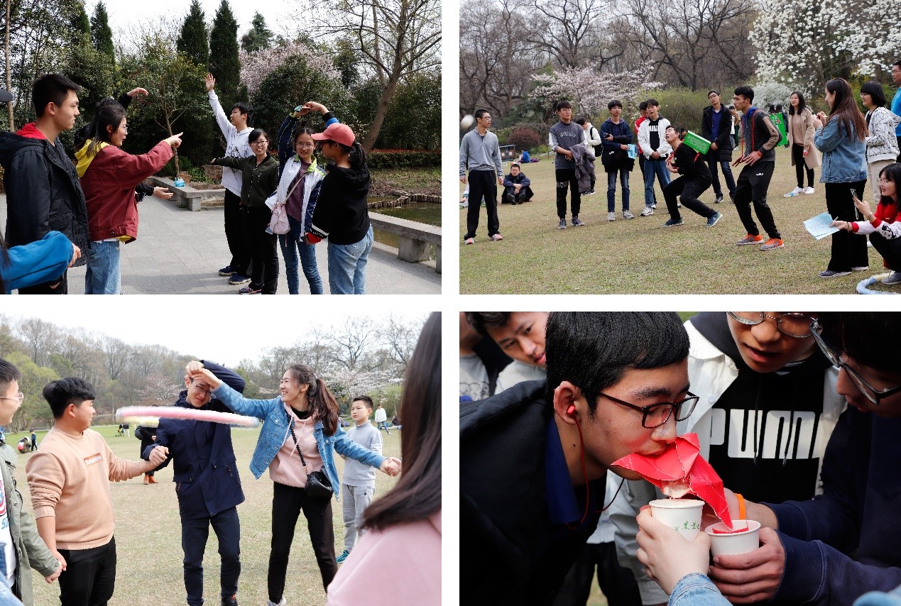 全体成员以抽扑克牌的形式分好小组,以番号鸽 逸夫楼为起点,根据不同颜色路线图为指向,最终到达活动终点流徽榭。各组团结合作猜出景点字谜,并在该景点处按照要求拍摄合照,一路上同学们增进对彼此的了解并完成指定任务。在全体成员到达终点后,又以小组为单位进行积分制流徽榭游戏。通过抛绣球、一圈到底、面粉搬运工等丰富多彩的游戏,各小组成员充分发挥了协作能力,使活动氛围达到高潮。最后汇总游戏积分,对同学们进行奖励。