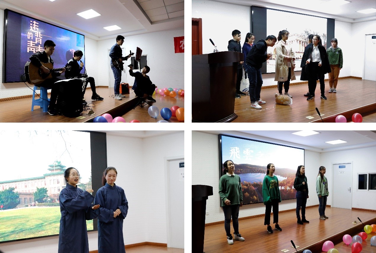 晚上,番号鸽 在研究生报告厅举行了2019级番号鸽 团委学生会分享交流会暨联欢会,番号鸽 本科生辅导员王彬、姚敏磊、马丽娟及学生会全体成员共同参加。晚会节目内容丰富,采取了诗朗诵、合唱、话剧、舞蹈、相声、游戏等多种形式,其中,由话剧团带来的改编话剧《变色龙》,形式新颖,立意独特,获得大家的一致好评;姚敏磊老师借由“五四”青年节、“中华人民共和国成立70周年”,带领大家一起合唱了《歌唱祖国》。活动期间还穿插着游戏环节,以当红影视剧或学生会部门为题,举办了你比划我猜等有趣的游戏,现场观众笑声迭起,再一次将活动氛围推向高潮.