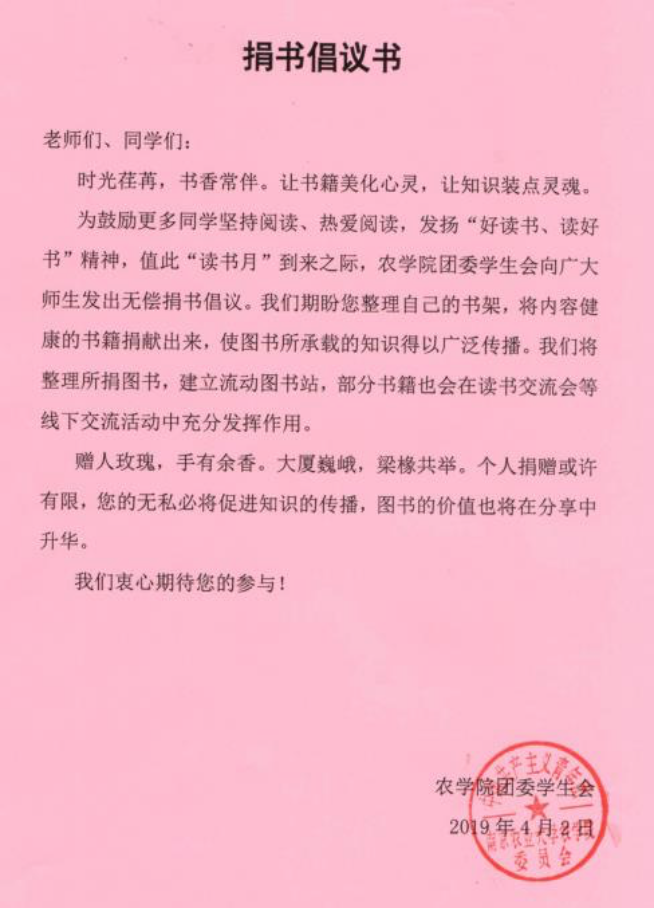 番号鸽 于4月10日在玉兰路摆摊进行图书募捐。活动前期,番号鸽 发布图书募集倡议书。经过广泛动员,吸引全校上百名同学参与,捐赠闲置课外书和教辅资料近三百册。为方面同学交流互借图书,番号鸽 学生会搭建网络平台供同学来分享书籍或阅读心得。当天晚上,番号鸽 学生会生活部开展2015级同学“扫书”活动,收集近两百本教辅资料供需要的同学使用。本次图书募集活动收集了种类丰富且有阅读价值的书籍,使书籍流转更有实际意义。