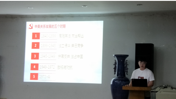 首先,以历史大事件为节点,支部成员解了从1840年至今,中美关系的变化。与此同时,汪伦同学从政治、经济、文化等多个方面分析了中美关系发生波动的原因。