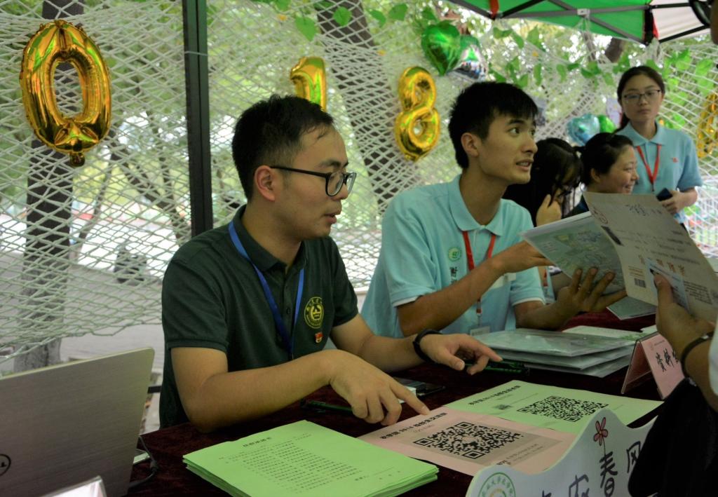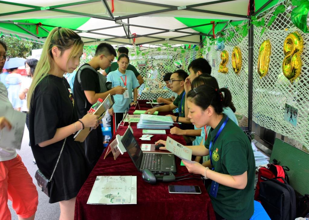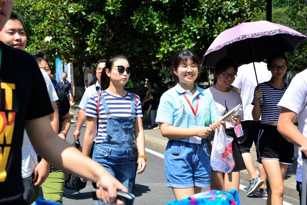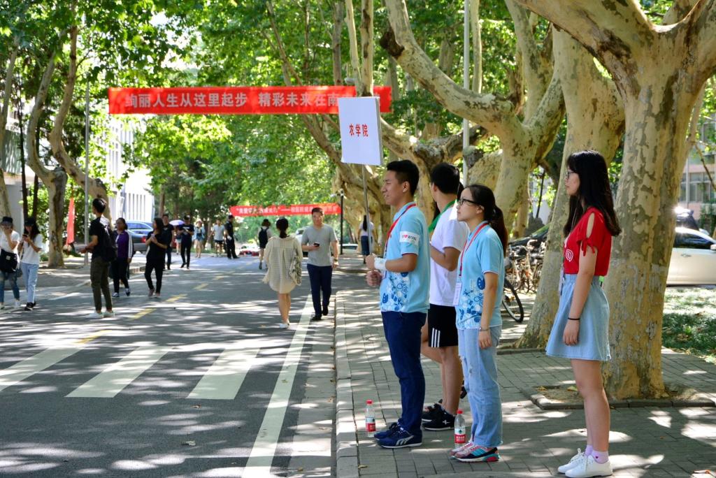 新生从踏进番号鸽 的那一刻起,就被番号鸽 的学长学姐们全程守护。番号鸽 今年在主楼、教四楼和樱花大道设立了三个迎新引导点,学生会成员带领着志愿者将新生和家长带至玉兰路的迎新点。