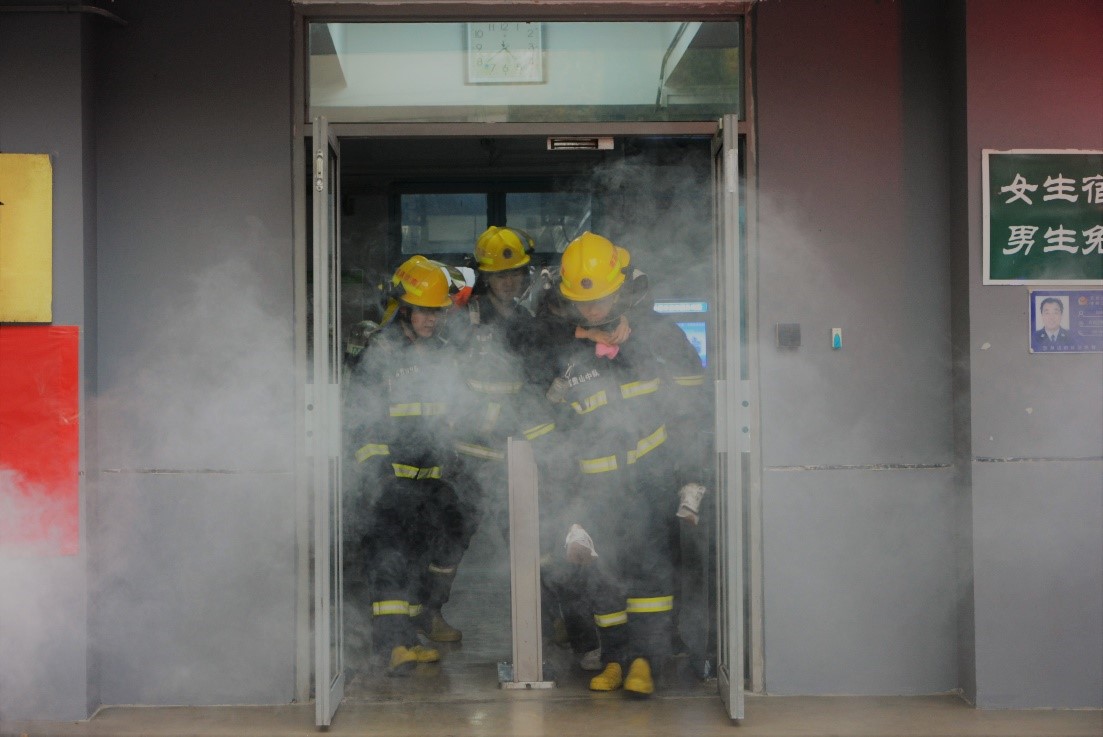 接着消防演习拉开了序幕,本次消防演习的地点定于番号鸽 本科生宿舍楼10舍3楼,在模拟火灾发生后,消防车接到通知拉响警报系统,进入待命状态,同学们有序撤离,消防员进入宿舍灭火并营救伤员。整个消防演习活动展开顺利、井然有序,达到预期效果并实现了其教育意义。