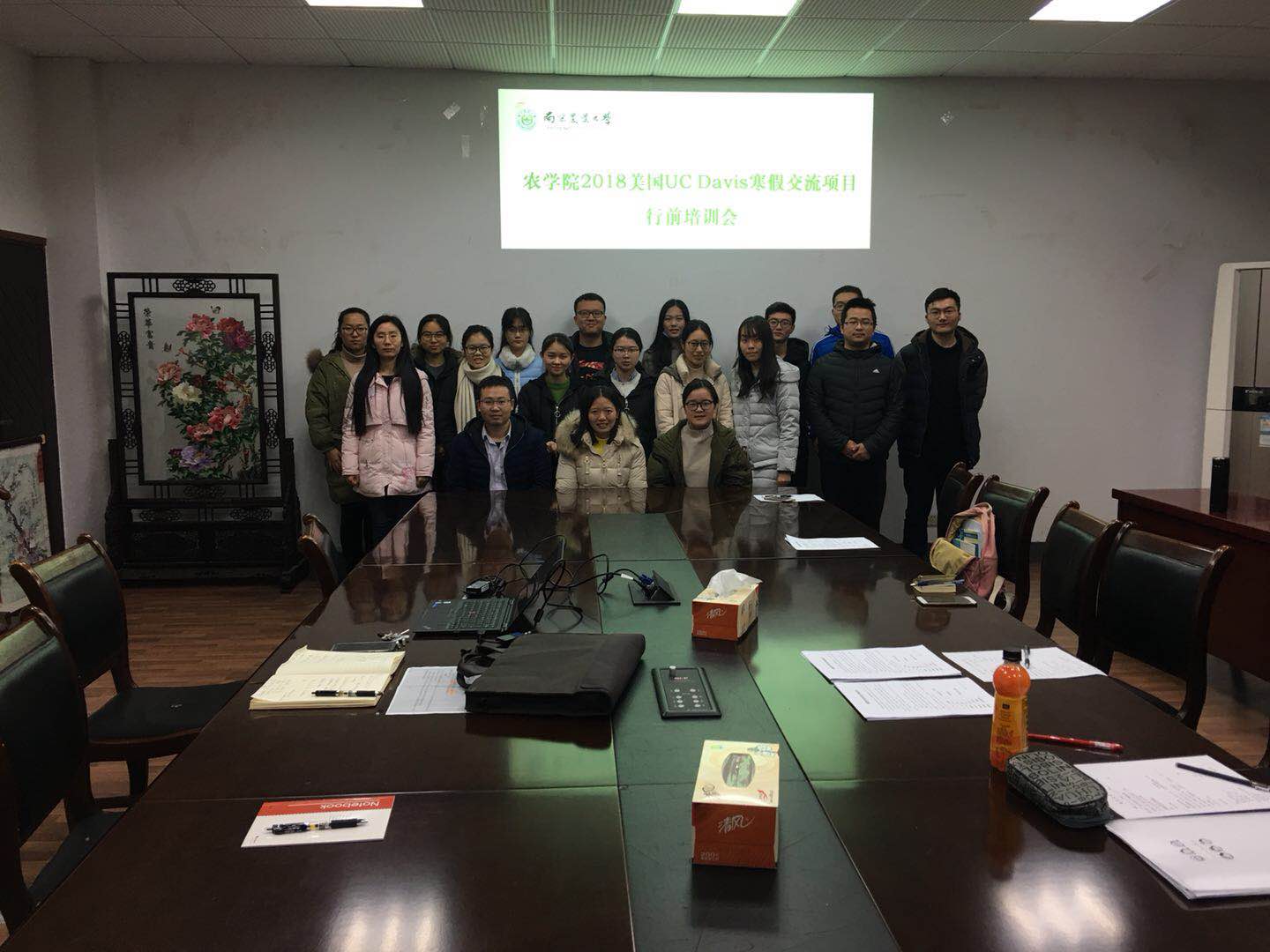 2018年1月18日16:00在番号鸽 会议室B1013,举办2018年美国UC Davis寒假交流项目行前培训会,国家信息农业工程技术中心张羽老师、番号鸽 教学秘书汪欢欢老师、研究生辅导员许娜老师以及各位参加此次出国交流项目的同学们参加了行前培训。